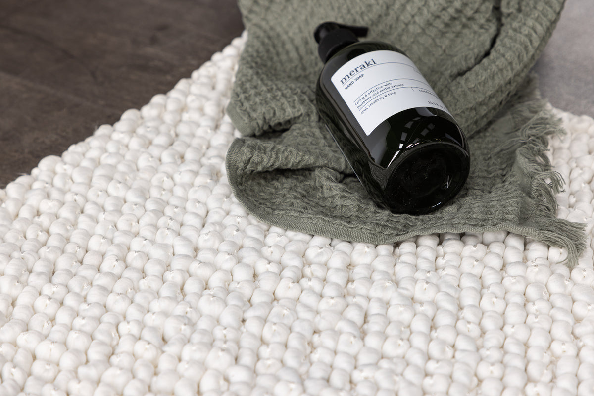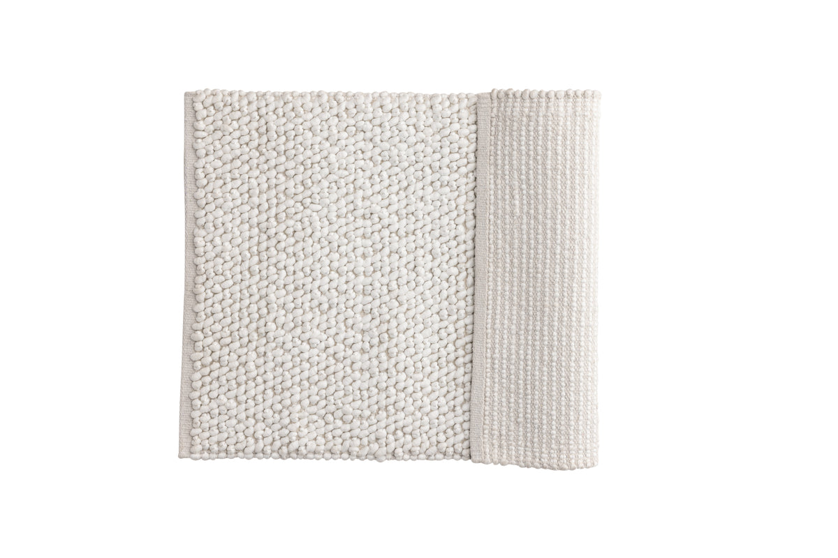 Skäm bort dina fötter med Wilmer badrumsmatta, en perfekt kombination av stil och komfort. Den handvävda konstruktionen ger Wilmer en exklusiv karaktär med dess speciella vävsätt med öglor som ser ut som små bollar. vilket ger Wilmer ett härligt lekfullt intryck och erbjuder en oöverträffad mjukhet som omfamnar dina fötter när du kliver ut ur duschen eller badkaret. Varje steg du tar blir en ren njutning med denna underbara matta som ger en härlig känsla av lyx till ditt badrum. Den rektangulära formen och dimensionerna på 50x80cm gör den perfekt för att passa in i de flesta badrum. Wilmer i färgen vitt ger dig en ren och fräsch känsla till ditt badrum. Det stilfulla valet av vitt gör att mattan smälter perfekt in i vilken inredningsstil som helst och kompletterar ditt badrums estetik på ett elegant sätt. Den subtila tonen av vitt ger ditt badrum en känsla av ljus och rymd samtidigt som den skapar en avslappnad och fridfull atmosfär. Du kan vara säker på att Wilmer badrumsmatta kommer att bli ett snyggt och praktiskt tillägg till ditt badrum. Spana in våra andra mattor i serien Wilmer och hitta din favorit! Vi erbjuder olika färger för att du ska kunna hitta den perfekta matchen till din personliga stil och badrumsinredning.