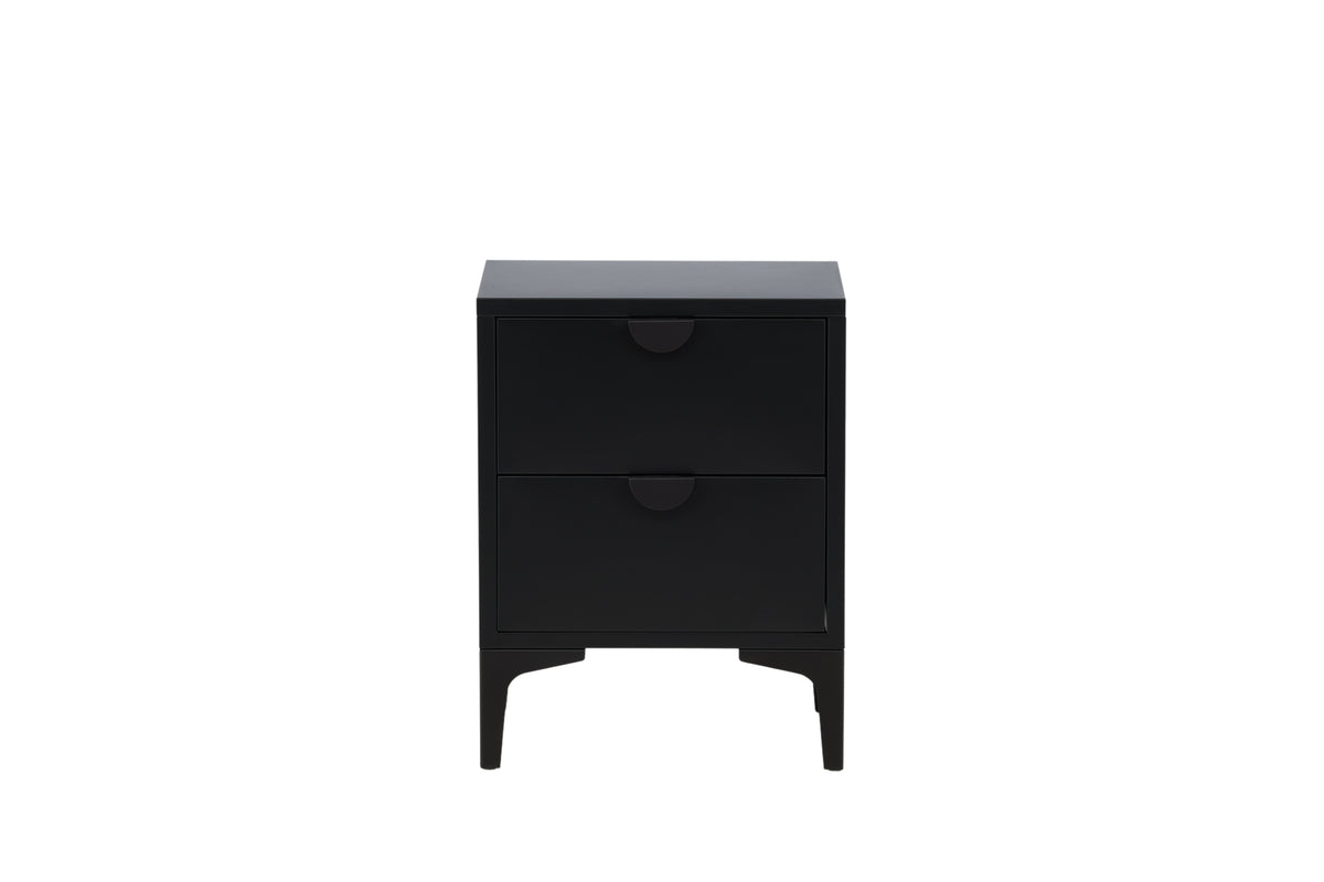 Sängbord i serien Piring är perfekt som förvaringslösning! Det kvadratiska sidobordet i svart stål har två lådor för dold förvaring och stilren ovansida med lagom plats för en sänglampa, en bra bok och eventuell prydlig inredningsdetalj för modern look. Sängbordet lyfts upp av fyra ben som ger en luftigare känsla och den raka designen gör bordet lättplacerat och enkel att matcha. Se våra bilder för inspiration!