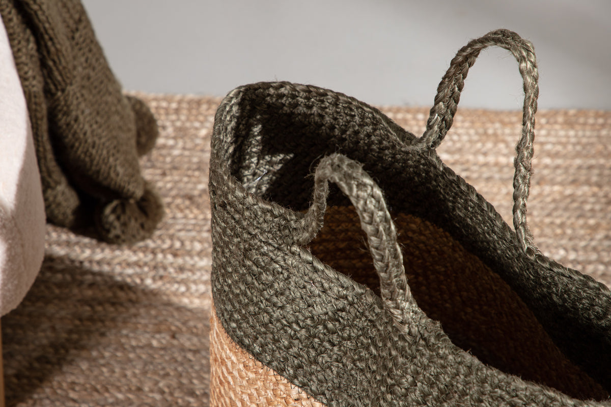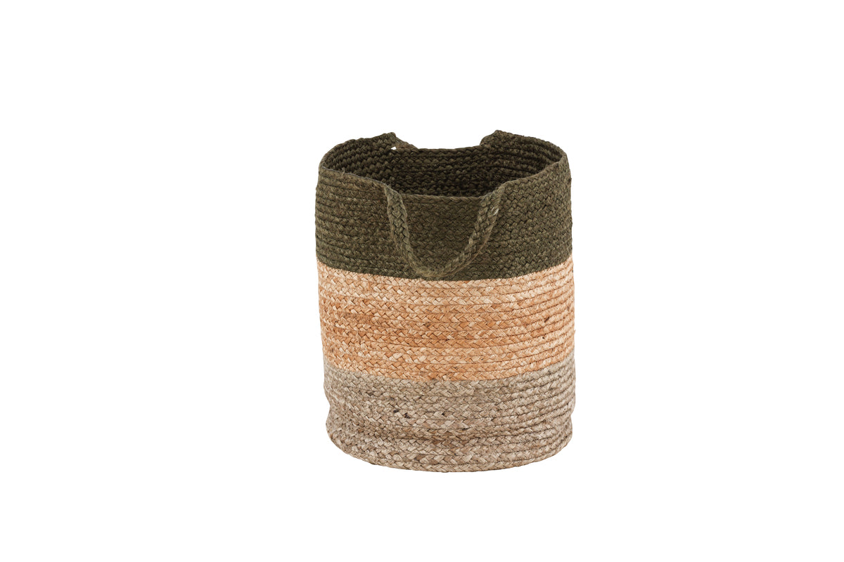 Den här fina förvaringskorgen från serien Kanpur i flätad jute har en läcker modell och snygga kulörer! Den fungerar utmärkt både till förvaring och som snygg inredningsdetalj - det bästa två världar. Korgen är flätad i färgerna grå, grön och neutral i ett brett, randigt mönster. Den går även att använda som kruka men då krävs en fuktsäker innerkruka först. Pryd ditt hem med en smart förvaringslösning!