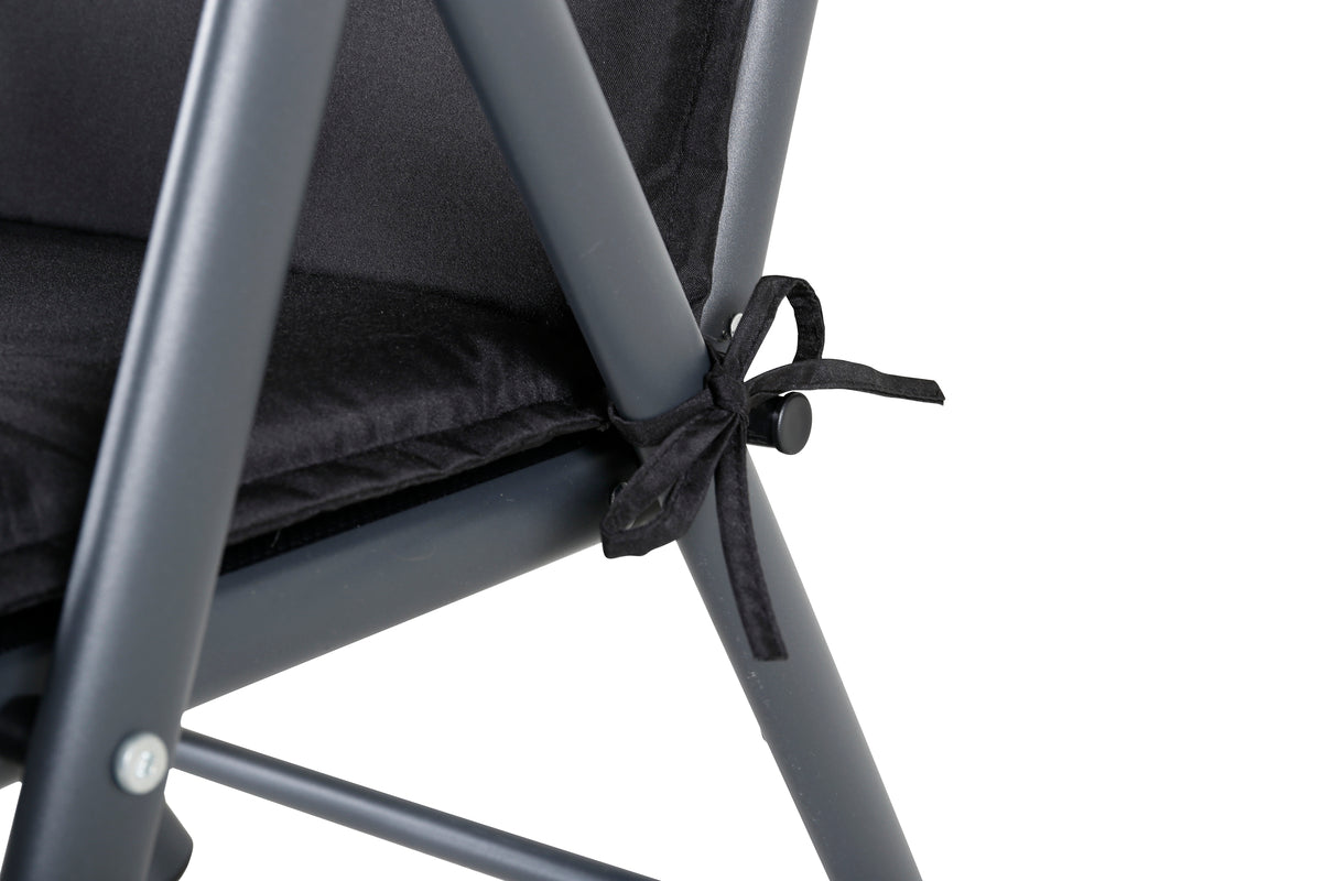 Klassisk och stilren svart positionsdyna, försedd med kudde och remmar. Remmarna hjälper till att hålla dynan på plats. Dynan är stoppad med 50% Fiber och 50% Skum som gör den mjuk och behagligl. Njut ordentligt av dina härliga sommardagar!