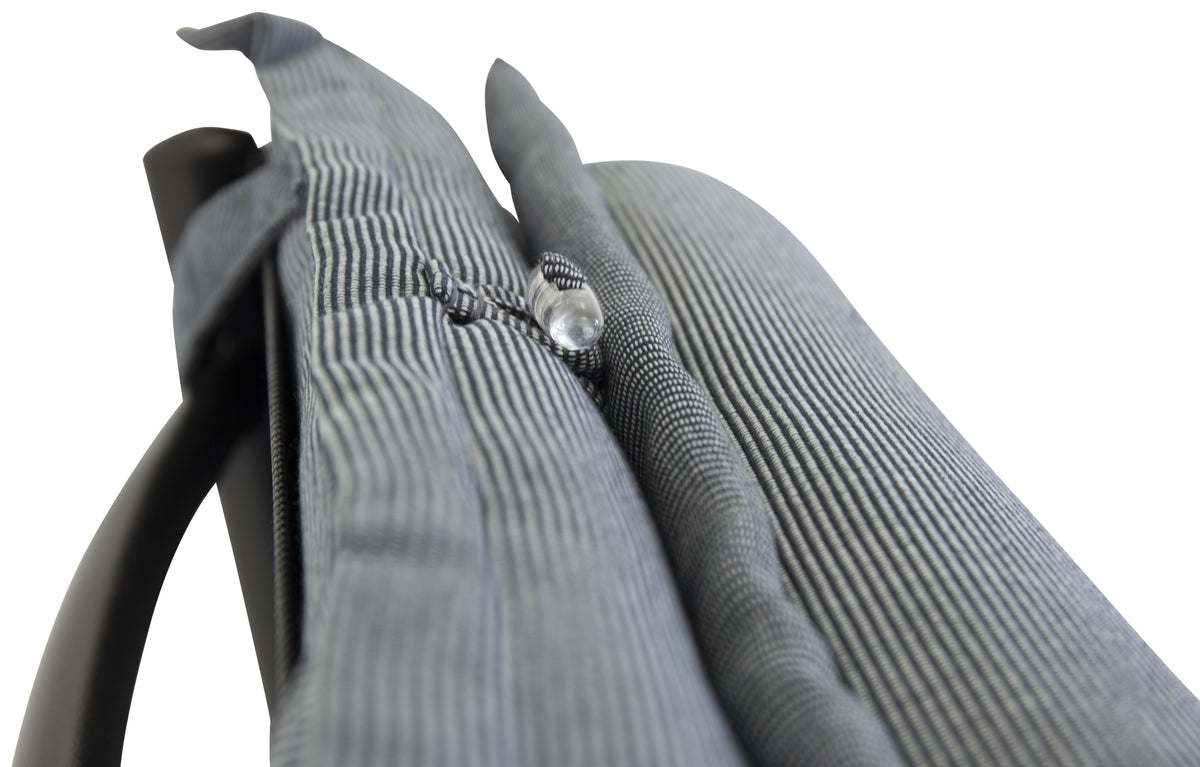 Ljusgrå 5-positionsdyna med kudde och hängen som håller dynan på plats. Luta dig tillbaka och sitt bekvämt i många timmar.