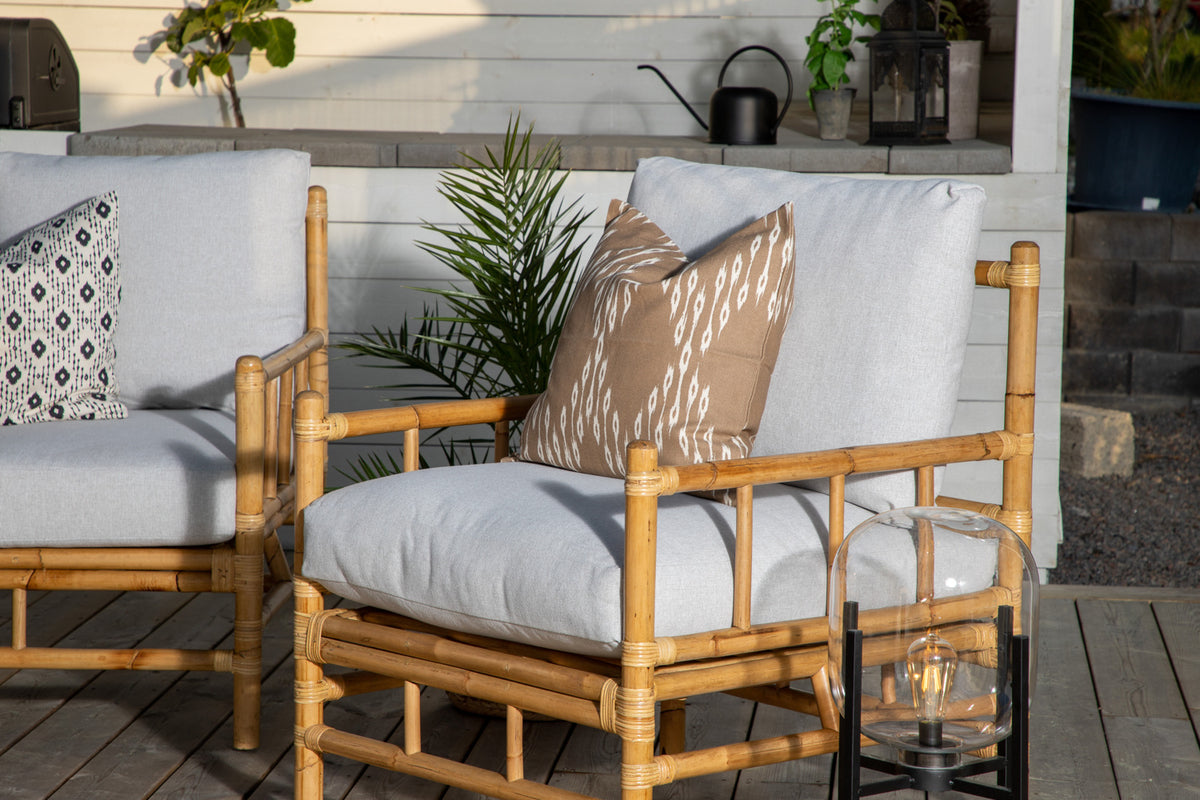 Naturfärgade loungestolar i bambu känns helt rätt för poolhänget! Möblera uteplatsen bekvämt, inbjudande och stilrent med en stol som imponerar. Cane loungestol skapar ett lugn i hela kroppen - harmoni! Skötselråd: Bambu är ett naturmaterial som är otrolig snyggt och trendigt, däremot inte särskilt väderbeständigt. Rottingmöbler ska helst inte stå utomhus utan bör placeras i torra utrymmen. Undvik stora temperaturskillnader. Enklaste rengöringen sker med fuktig trasa.