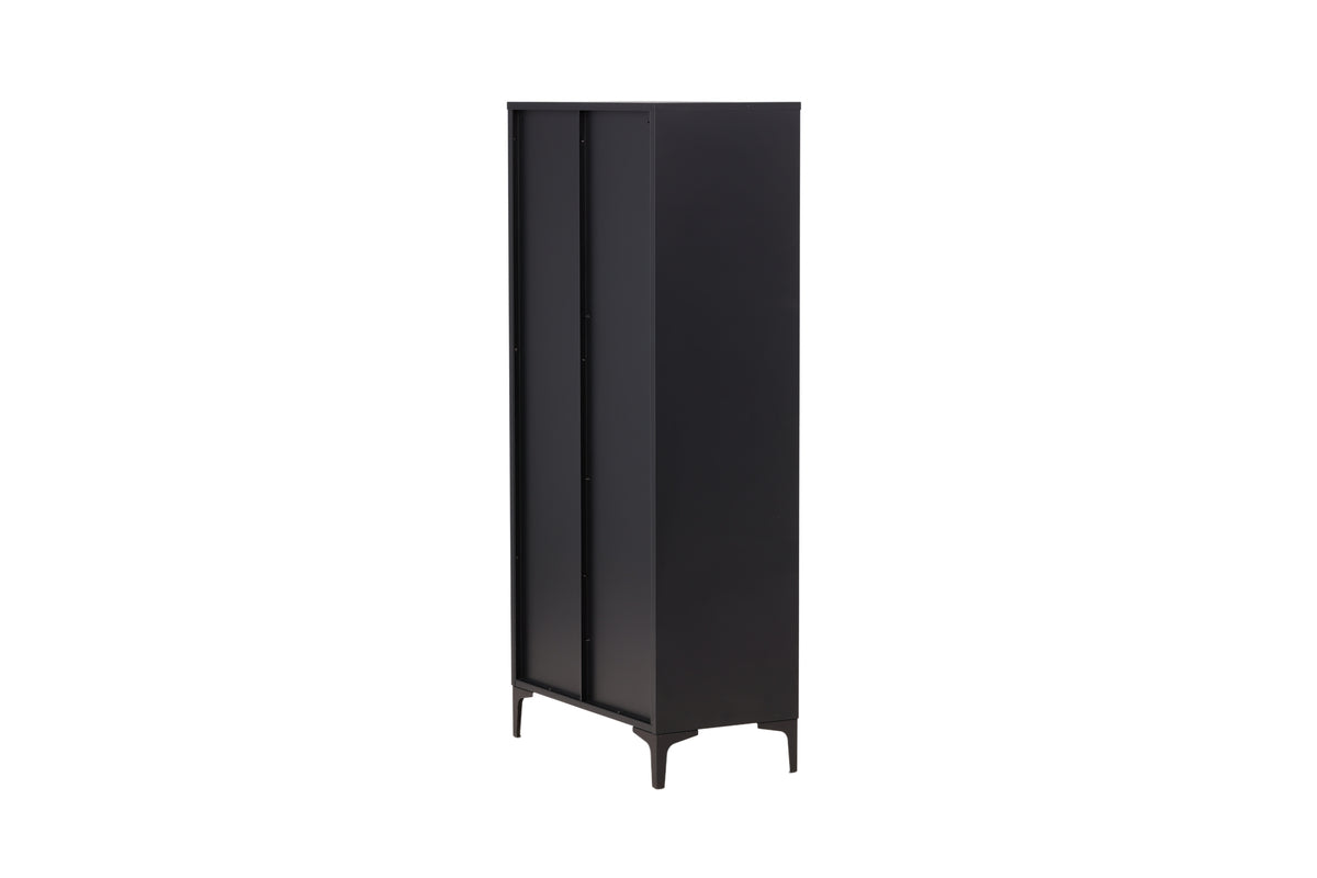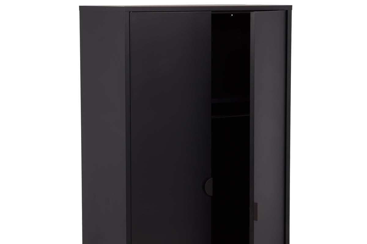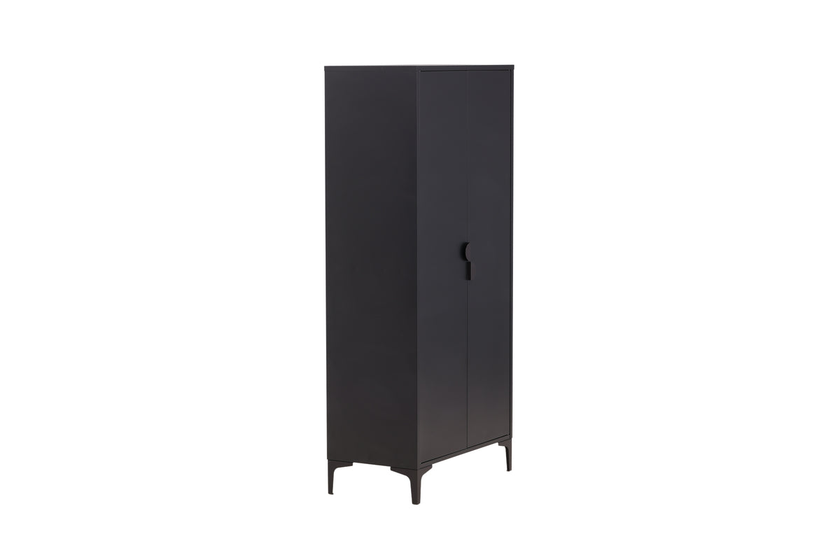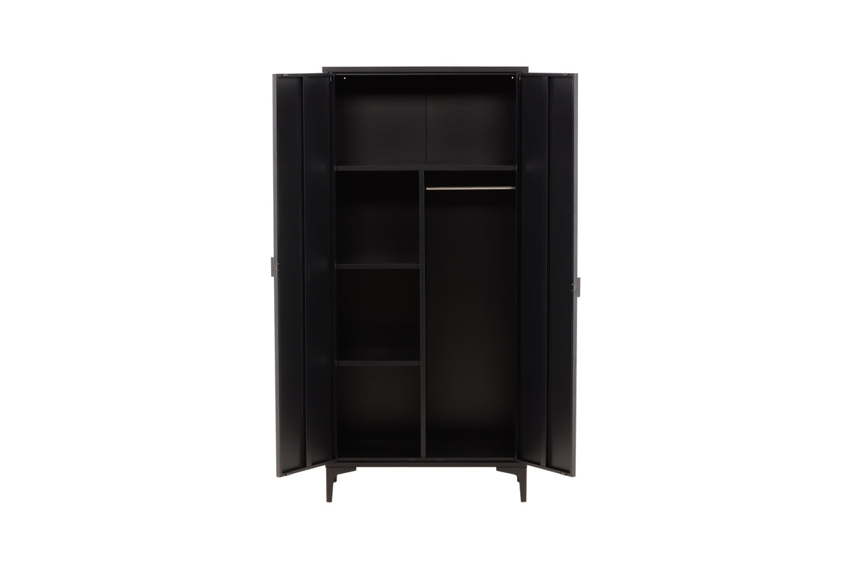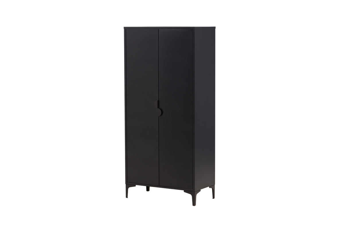 Kaxig och tidlös - Garderoben från serien Piring är det perfekta tillskottet till sovrummet! Den här höga garderoben i svart stål har två dörrar som öppnar upp till fyra hyllplan och rymmer även plats för hängare så att de nystrukna kläderna slipper skrynklas. Piring lyfts upp av fyra nätta ben som skapar ett luftigt intryck och underlättar också för dammsugaren. Investera i mer förvaringsyta till dig själv och få en snygg möbel i ditt hem på köpet!