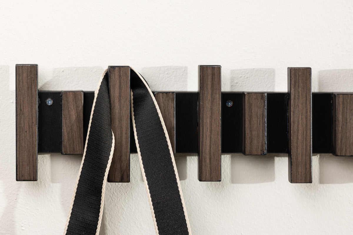 Letar du efter den perfekta lösningen för att organisera din hall på ett snyggt och funktionellt sätt? Då är hängaren från serien Nimes det ultimata valet för dig! Med en harmonisk kombination av mörkbrun MDF och en robust svart metallskena, är denna hängare inte bara en förvaringslösning – den är en diskret och stilfull inredningsdetalj som kommer att göra din hall komplett. Med Nimes får du en smart och effektiv lösning för att hänga upp allt från jackor till skor och accessoarer. Håll ordning på dina vardagliga föremål utan att kompromissa med stilen. Dessutom har den en tidlös design. Tillverkad i mörkbrun MDF och en svart metallskena skapar den här hängaren en modern känsla som smälter väl in i olika inredningsstilar. Med den medföljande monteringsutrustningen är det enkelt att fästa Nimes på väggen och skapa ett organiserat utrymme på nolltid. Varje detalj är utformad för att skapa en positiv atmosfär när du kommer hem! Den finns även i en vitputsad kulör så välj den färg som passar just ditt hem bäst. Mått: 75x3,5x13cm.