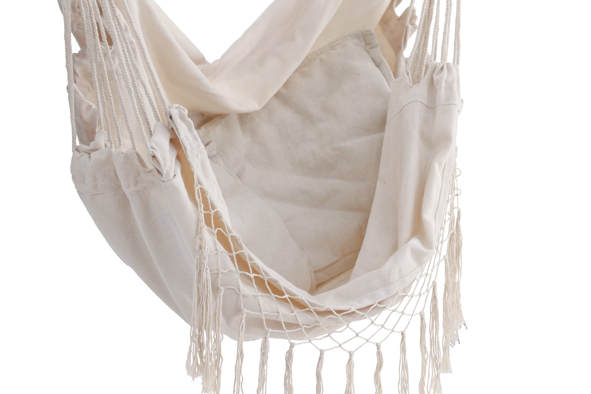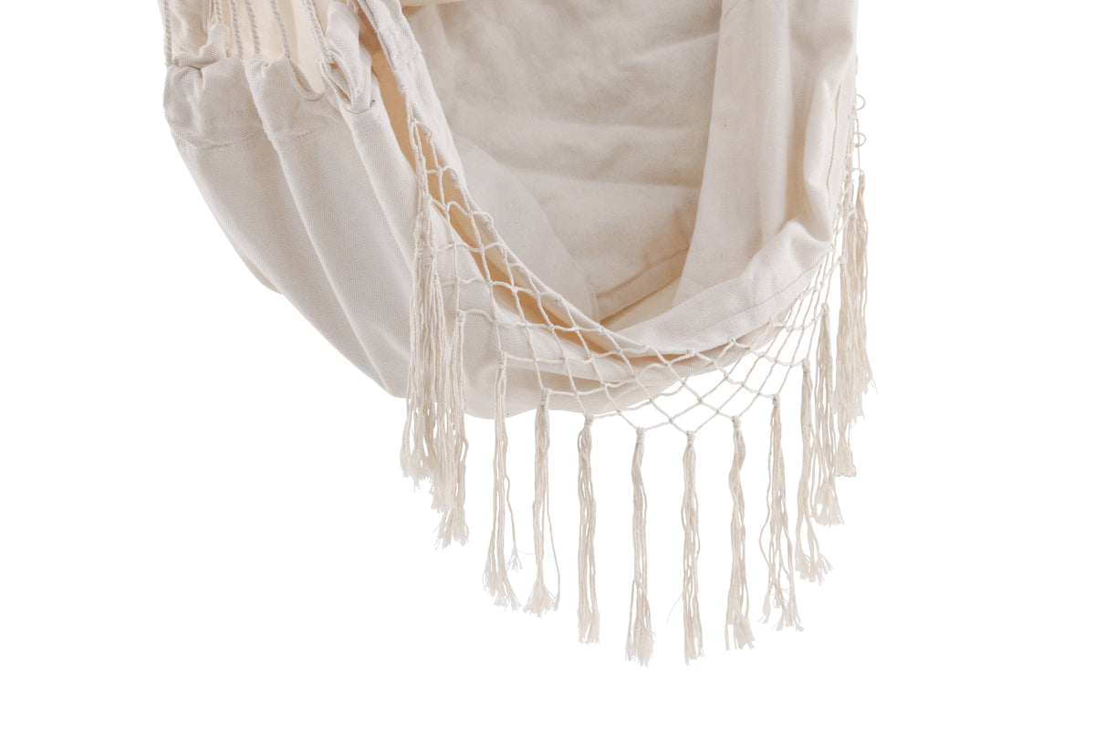 Den här charmiga hängstolen erbjuder dig en rofylld och bekväm plats som du kan avnjuta i trädgården. Culasi har en inbjudande utformning och trendig design med en sits i vitt polyester- och bomullstyg. De slitstarka repen i samma kulör hålls uppe av en dekorativ träpinne som blir en snygg detalj i blickfånget. Här kan du gunga och njuta av stillsam egentid!