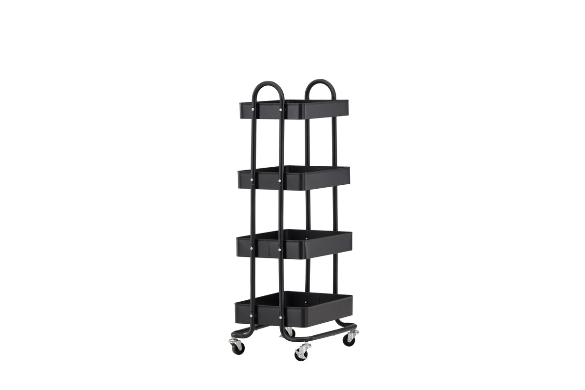 Behöver du ett snyggt och praktiskt sätt att organisera ditt utrymme? Då är vår förvaringshylla Manaus det perfekta valet för dig! Med sina fyra generösa lådor erbjuder den inte bara smart förvaring, utan även en touch av modern stilrenhet och organisering till ditt rum. Det finns flera fördelar med Manaus funktion. Hyllan är i svart pulverlackerad metall som enkelt matchar övrig inredning och är slitstarkt över tid. Med fyra smidiga hjul i botten kan du dessutom flytta omkring den enkelt. Placera den i badrummet och fyll med handdukar och hygienartiklar eller i garderoben för lite extra klädförvaring. Upplev känslan av ett välorganiserat utrymme som speglar din personlighet och stil. Manaus hjälper dig skapa en harmonisk atmosfär där du snabbt får en överblick över det du önskar ha framme. Ett tillskott i hemmet som inte bara håller dina saker i ordning, utan också förstärker känslan av hemtrevnad och organisering. Beställ idag och låt ditt utrymme stråla!