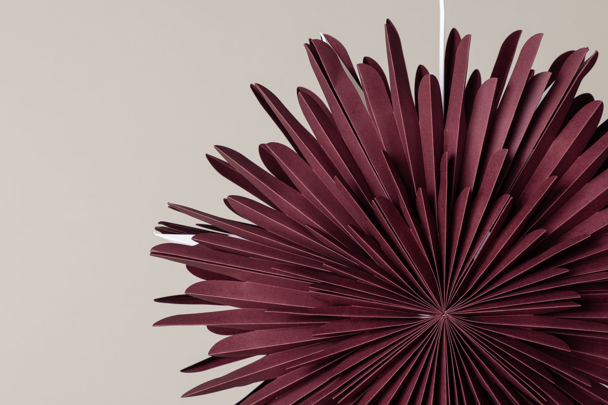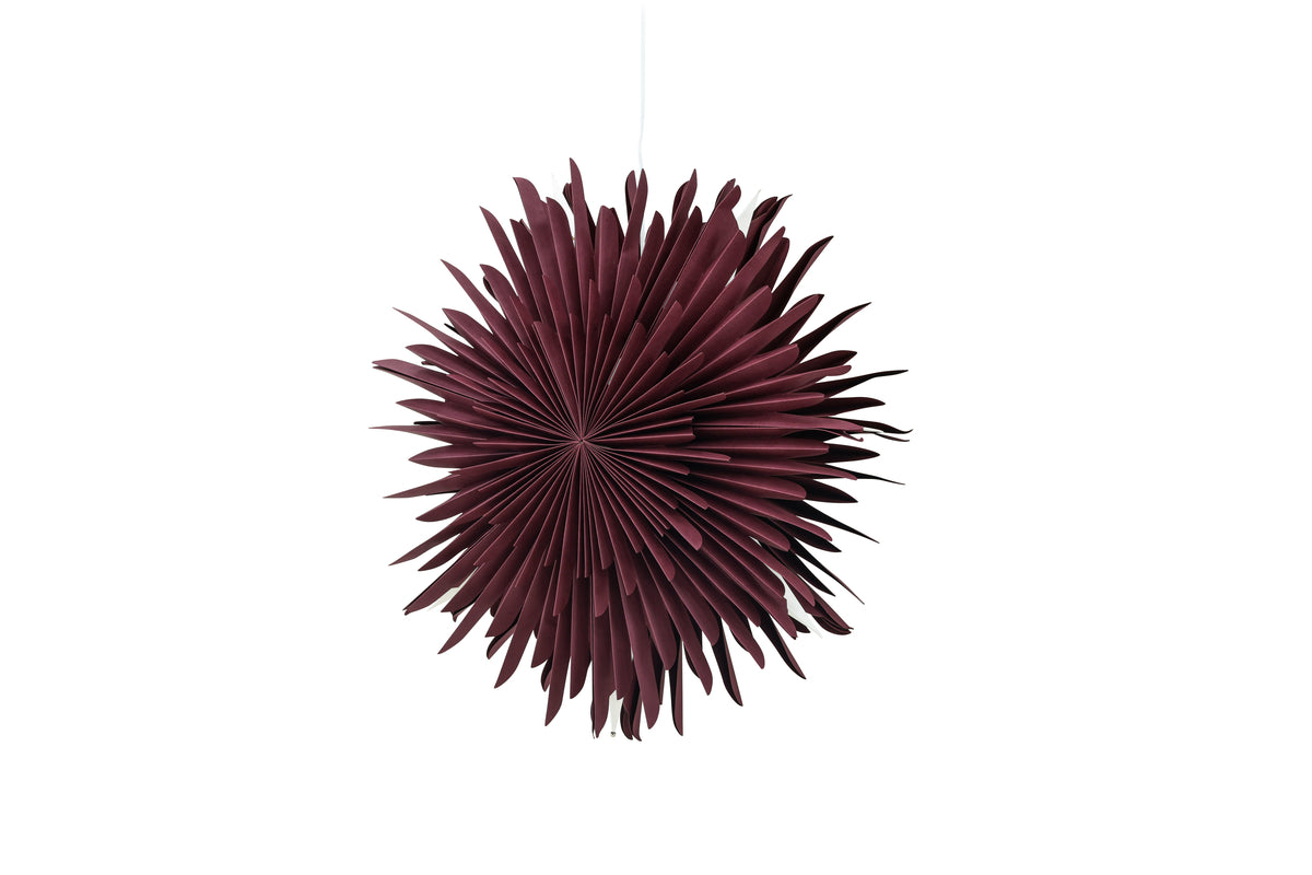 Skapa en mysig och hemtrevlig atmosfär med taklampan Sälen - Perfekt för höst och jul! Denna vackra, mörkröda pappersstjärna kommer att sprida ett varmt och mysigt ljus i ditt rum, vilket gör den perfekt för både höstens vackra färgskiftningar och julens högtidliga festligheter. Komplettera din inredning på ett fantastiskt och charmigt sätt! Sälen taklampa finns i flera olika storlekar för att passa dina behov och rummets dimensioner. Med sin diskreta vita sladd smälter lampan elegant in i din inredning och blir en snygg detalj. Den är enkel att installera och kommer snabbt att skapa en stämningsfull känsla i ditt hem. Den varma mörkröda färgen bidrar dessutom till en mjuk och behaglig belysning som får dig att känna dig avslappnad och glädjefylld. Mått: 60cm.