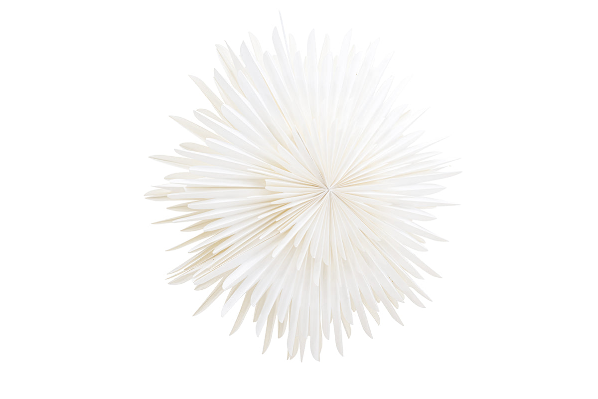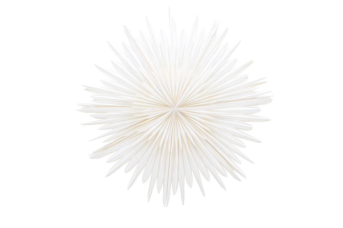 En pampig och stor pappersstjärna i skinande vit kulör som skapar ett mysigt sken i ditt hem! Vår vackra taklampa från serien Sälen är utformad som en flerdimensionell pappersstjärna i vitt papper. Tack vare dess flera lager så skapar den här lampan en vacker dimension till rummet och får ett stilrent djup i sig själv. En perfekt inredningsdetalj helt enkelt. Den diskreta vita sladden smälter elegant in i helheten och bidrar till att skapa en stilren och sofistikerad belysningsanordning. Sälen passar perfekt för att lysa upp dina höstmörka dagar och för att skapa den perfekta atmosfären när julens högtidliga stämning kryper fram. Häng den i sovrummet för att skapa en lugn och avkopplande atmosfär, placera den i köksfönstret för att skapa en mysig stämning eller använd den inne i vardagsrummet för att ge rummet det där extra magiska touchen. Sälen finns i flera olika storlekar och färger, vilket gör det möjligt för dig att välja den som passar bäst för ditt rum och stil. Varje storlek har sin egen charm och unika karaktär, men oavsett vilken du väljer kan du vara säker på att du får en belysningslösning som kommer att vara perfekt för just dig! Mått: 100cm.