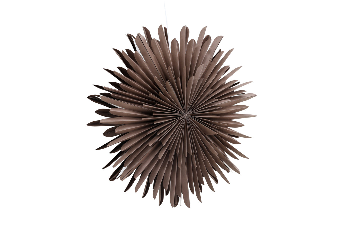 Inred ditt hem med varmt ljus under kalla vinterdagar med hjälp av vår pappersstjärna i greige färg från serien Sälen! Den här taklampan är formad som en blommande stjärna som sprider ett magiskt sken och mysiga känslor när det behövs som mest. Kulören drar mot den mörkbruna färgen men har även toner av lite grått och beige i sig. Den vita sladden som håller lampan på plats ger en diskret och stilren anordning, så att din belysning kan ta centrum i rummet. Oavsett om det är vinterns och höstens mörka dagar eller julens högtidliga stämning, kommer denna pappersstjärna att skapa en underbart mysig och rofylld atmosfär. Sälens blommande pappersstjärna finns i olika färger och storlekar, så att du kan välja det som passar dig och ditt hem bäst. Skapa en personlig touch och inred ditt hem på ett sätt som får dig att känna dig lugn och omfamnad! Mått: 80cm.