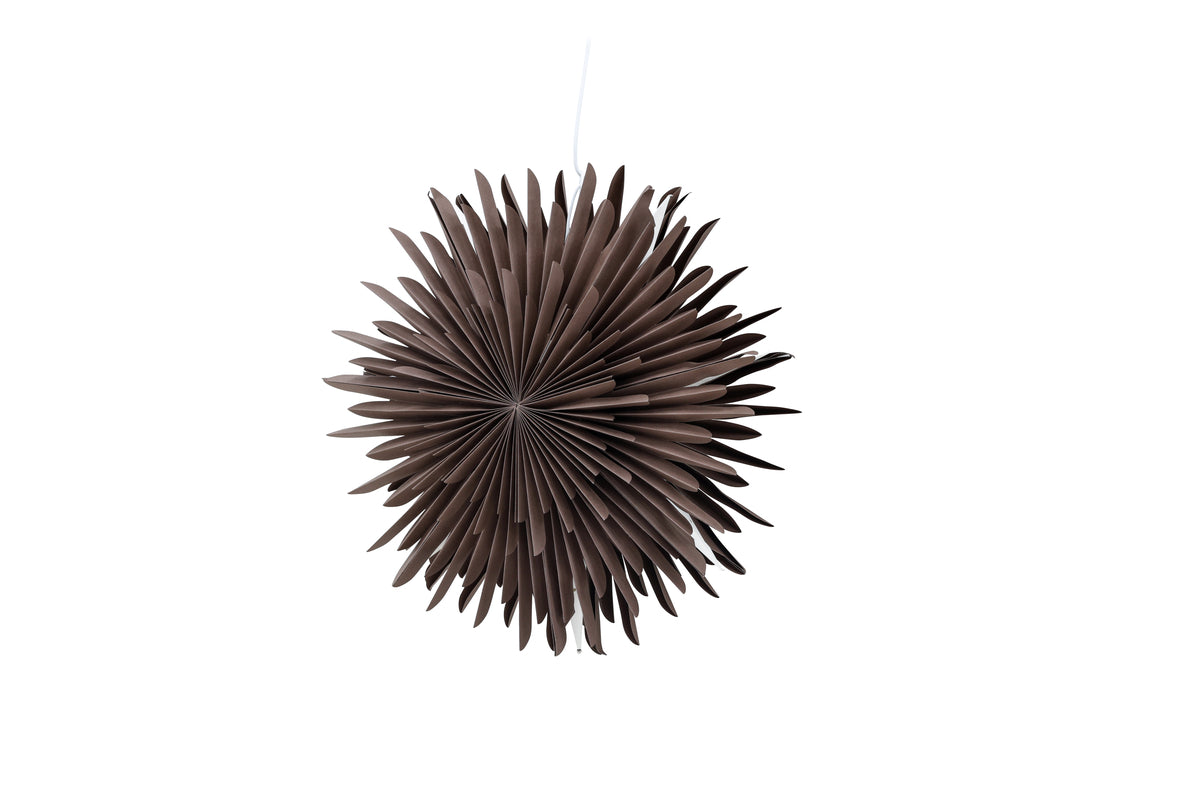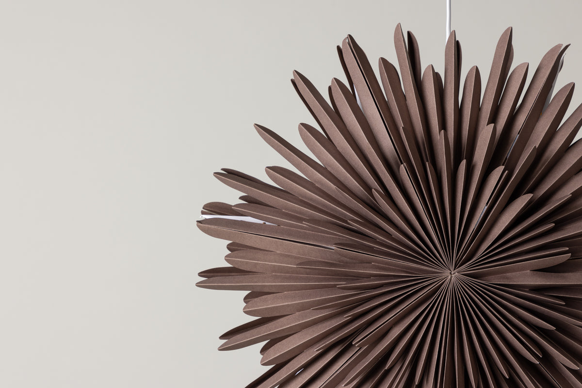 Inred ditt hem med varmt ljus under kalla vinterdagar med hjälp av vår pappersstjärna i greige färg från serien Sälen! Den här taklampan är formad som en blommande stjärna som sprider ett magiskt sken och mysiga känslor när det behövs som mest. Kulören drar mot den mörkbruna färgen men har även toner av lite grått och beige i sig. Den vita sladden som håller lampan på plats ger en diskret och stilren anordning, så att din belysning kan ta centrum i rummet. Oavsett om det är vinterns och höstens mörka dagar eller julens högtidliga stämning, kommer denna pappersstjärna att skapa en underbart mysig och rofylld atmosfär. Sälens blommande pappersstjärna finns i olika färger och storlekar, så att du kan välja det som passar dig och ditt hem bäst. Skapa en personlig touch och inred ditt hem på ett sätt som får dig att känna dig lugn och omfamnad! Mått: 60cm.