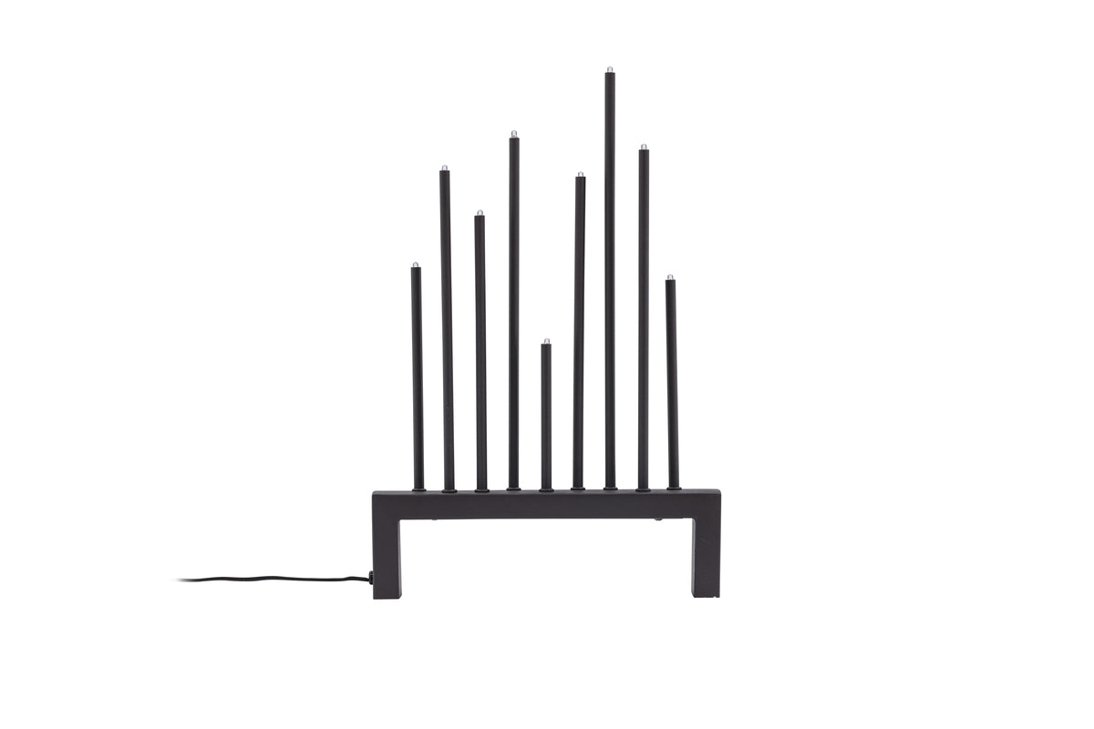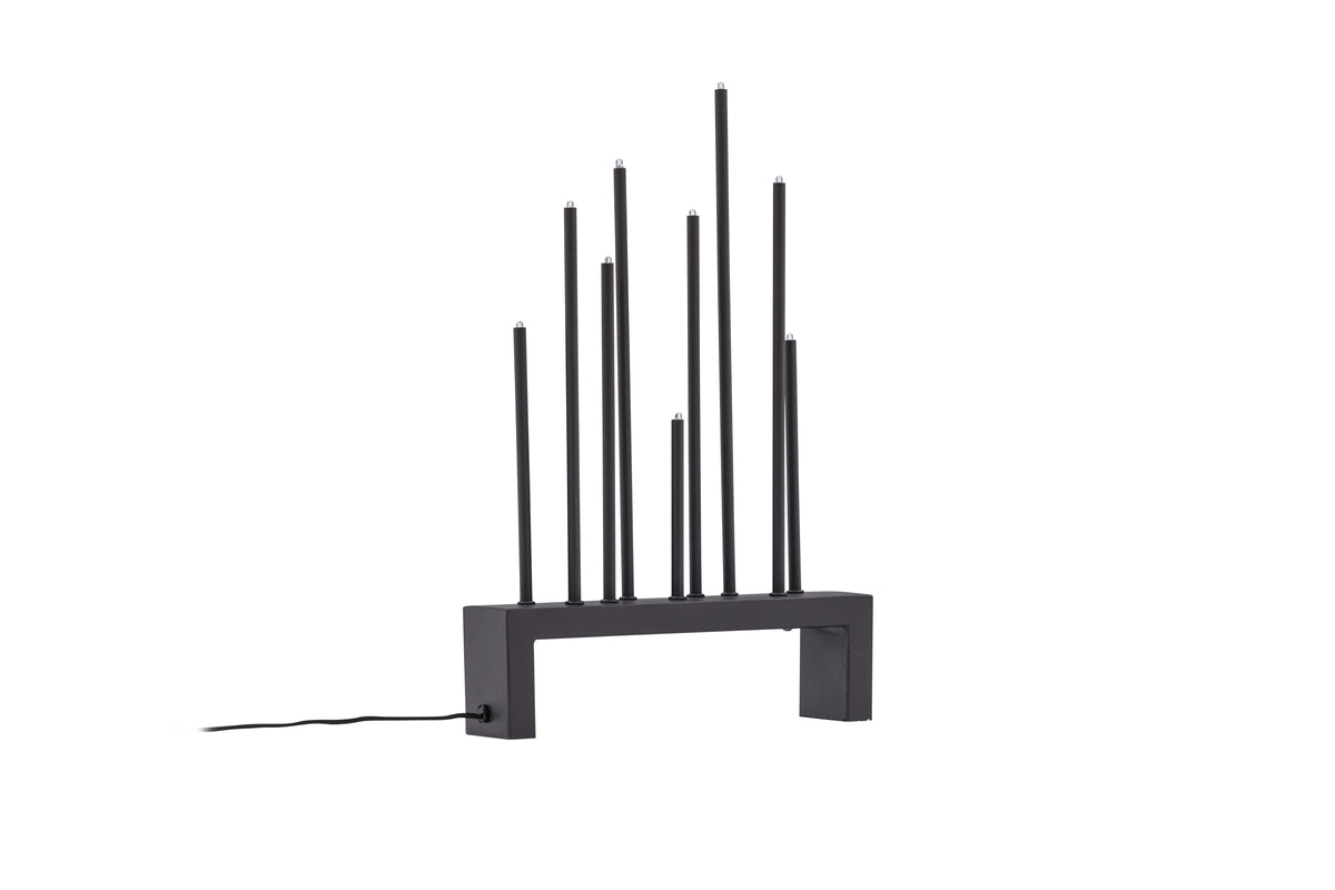 Skapa en stämningsfull och stilren atmosfär i ditt hem med vår fantastiska bruna adventsljusstake från serien Vallåsen. Denna eleganta bordslampa är utformad som en oregelbunden adventsljusstake och tillverkad i vackert mörkbrunt stål. Med små lampor i olika höjder sprider den ett varmt och inbjudande sken. Vallåsen är inte bara en vanlig adventsljusstake, den är också en stilren detalj. De små lamporna står stolt på ett upphöjt rätblock, vilket ger en modern touch till den traditionella designen. Placera den på ditt skrivbord för att skapa en avkopplande arbetsmiljö eller låt den lysa upp din fönsterkarm och välkomna besökare med sin charmiga glöd. Bäst av allt – den här lampan är inte begränsad till julens firande utan passar utmärkt som lampa hela året om. Den stilrena, jordnära kulören gör den väldigt modern men om du önskar en mer klassisk färg så finns den även i svart, du väljer vad som passar dig och ditt hem bäst! Mått: 42x27x6cm.