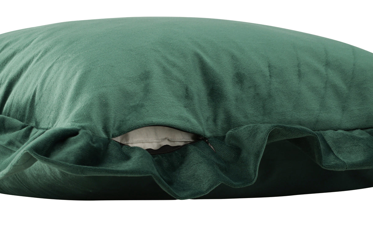 Kuddfodralet från serien Hailey i skogsnära grön kulör skapar snabbt ett elegant och personligt blickfång i ditt hem! Kuddserien Hailey erbjuder kvalitativa kuddfodral i olika storlekar och kulörer - allt för att passa dina önskemål och inredningsstil bäst. Kuddfodralet ramas in av en dekorativ volangkant och har en dold dragkedja på baksidan. Det smäckra sammetstyget ger ett läckert lyster till kudden och gör att den smakfulla gröna kulören framhävs på bästa sätt!