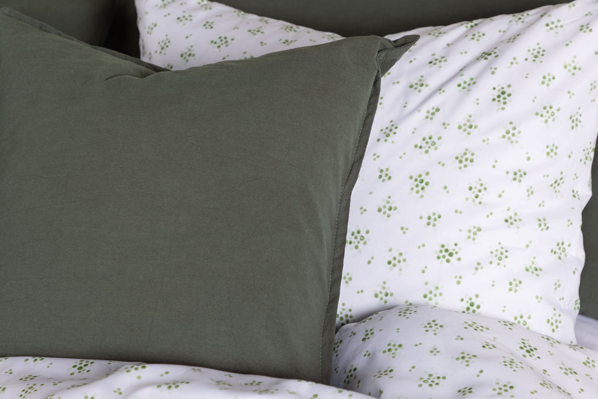 Värm upp atmosfären i rummet med trivsamma kuddar i en skogsnära grön kulör och följsamt bomullstyg! Serien Ronja erbjuder kuddfodral i flera olika kulörer och storlekar som är enkla att både variera och kombinera med andra kuddfodral. Kuddfodralet har en diskret dragkedja på baksidan och en passpoalkant i samma tyg. Följ våra skötselråd så kan du enkelt ta hand om eventuella fläckar för att få en kudde som står sig över tid!
