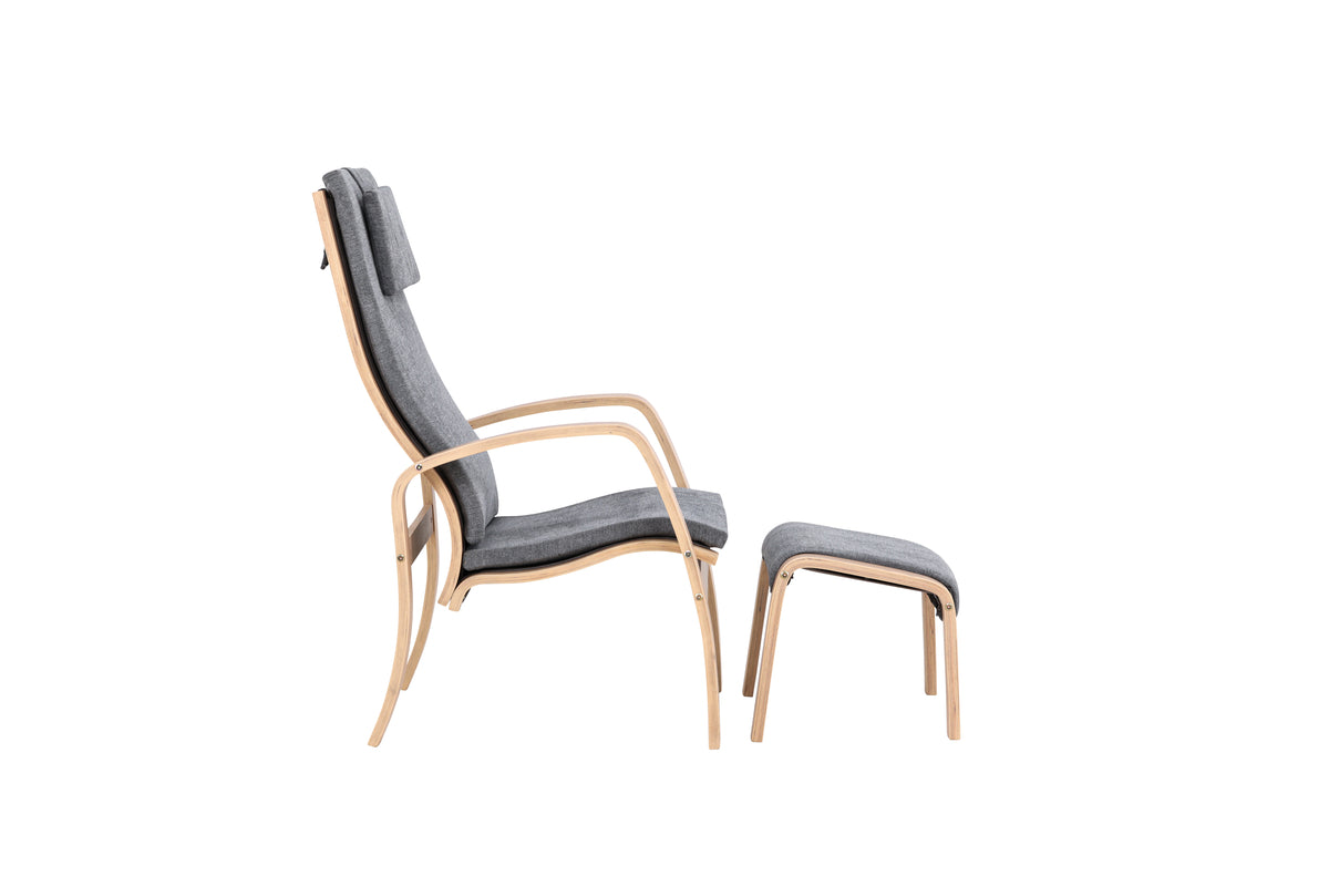 Upplev den harmoniska föreningen av stil och komfort med Grötö fåtölj och fotpall! Den eleganta plywoodramen i whitewash tillsammans med den mörkgråa klädseln ger inte enbart en härlig färgkontrast – utan tillför även en sofistikerad och tidlös touch till ditt hem. Med sina svängda former och raka kuddar skapar denna kombination en modern och bekväm sittupplevelse som lockar till avkoppling efter en lång dag!