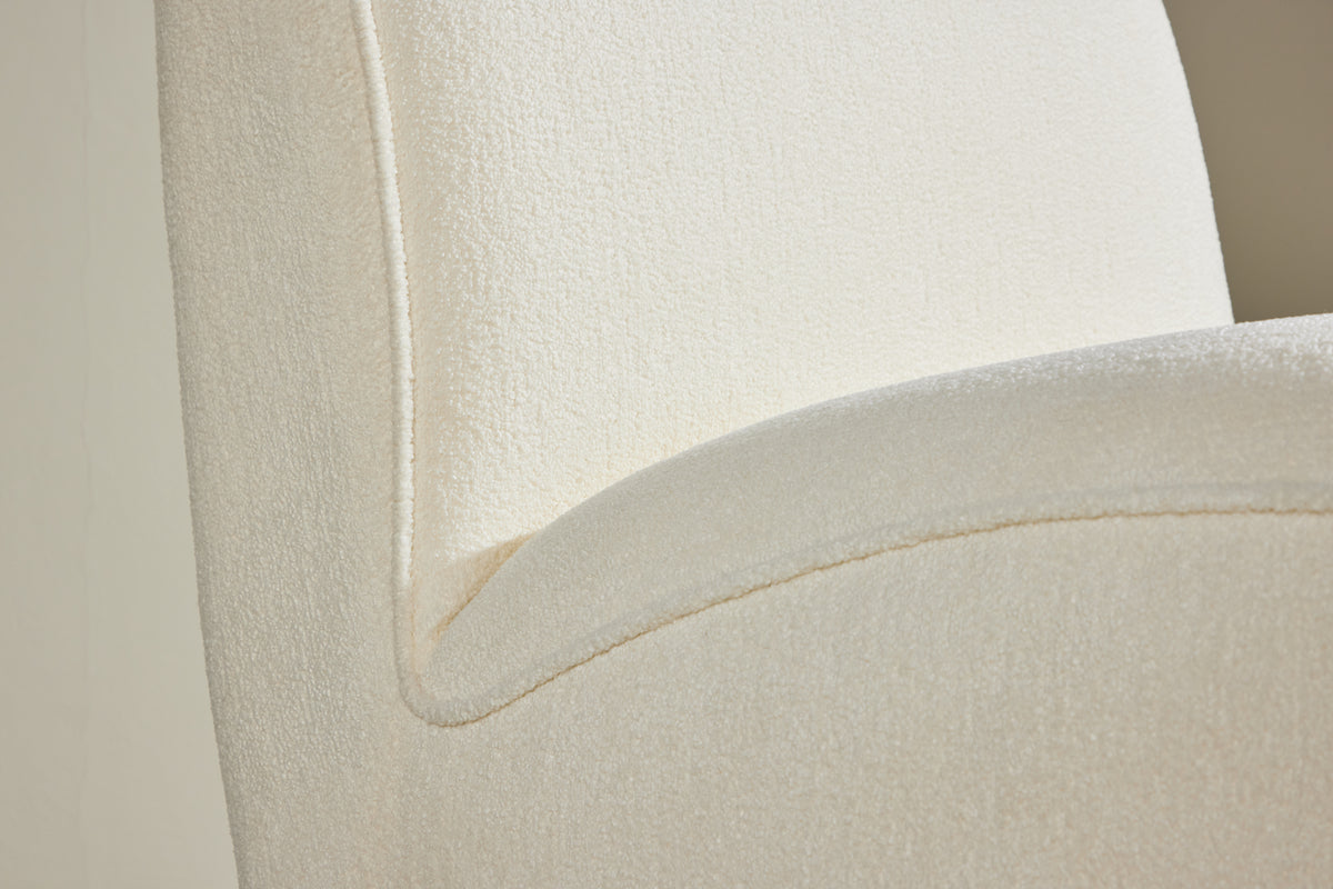 Upplev sofistikerad komfort och tidlös elegans med loungestolen My, klädd i lyxigt vitt bouclématerial. Denna stol är en perfekt balans mellan form och funktion, designad för att vara en central del av din inredning och samtidigt erbjuda oöverträffad komfort. Det vita bouclématerialet ger stolen My en mjuk och inbjudande textur, samtidigt som det tillför en exklusiv och modern känsla till rummet. Bouclé, med sin karakteristiska ojämna yta och mjuka finish, ger stolen en subtil, men ändå distinkt charm som smidigt smälter in i både minimalistiska och mer dekorativa miljöer. Med sina rundade former och generösa sittdjup är loungestolen My skapad för att bjuda in till avkoppling. Den erbjuder en omslutande komfort som gör den till den perfekta platsen för att koppla av med en bok, njuta av en kopp kaffe eller bara vila efter en lång dag. Stolen My är inte bara en sittmöbel, utan ett statement-piece som höjer stilen i ditt hem. Låt den vita bouclén förvandla ditt utrymme till en sofistikerad och lugn oas där varje detalj är utformad för att ge dig en känsla av lyx och komfort.