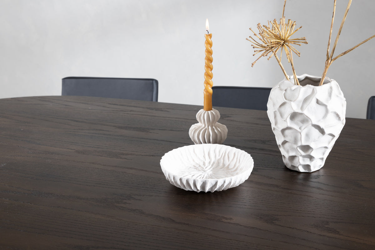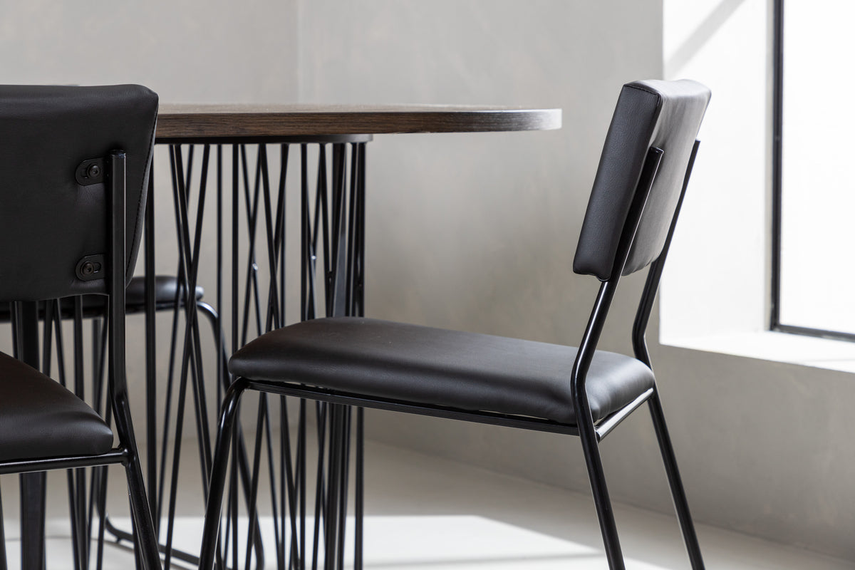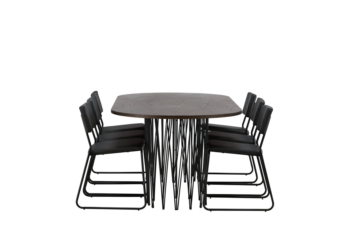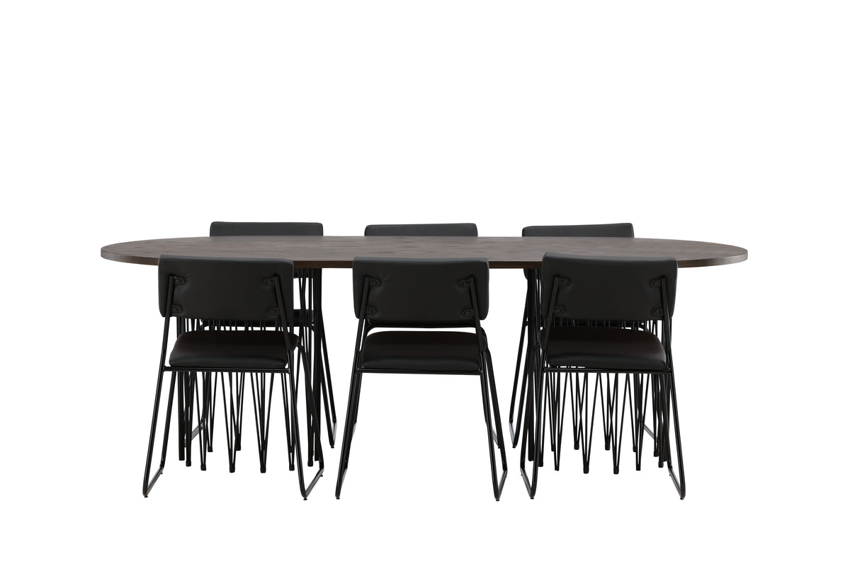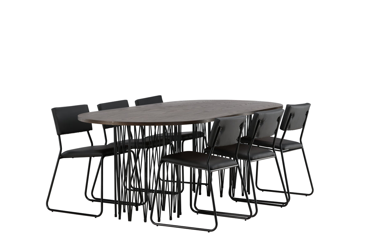 Ett ovalt matbord är perfekt om du vill skapa en social och inbjudande atmosfär i ditt hem! Matbordet Stone imponerar med sin modemedvetna design. Det tillhör Furniture Fashion kollektionen och har en vacker brunfärgad bordsskiva i MDF med faner och två dekorativa cylinderformade stommar i svart metall. Här tillsammans med våra minimalistiska matstolar från serien Kenth. Här tillsammans med våra moderna matstolar från serien Kenth. Stolen har en minimalistisk, modern design som skapar en luftig känsla i rummet. Rygg och sits är i svart polyuretanskinn och polyester och de smala stolsbenen är i järn. Sitt trivsamt och njut vid en familjär matgrupp!