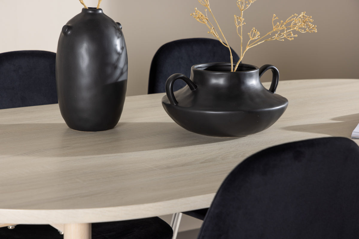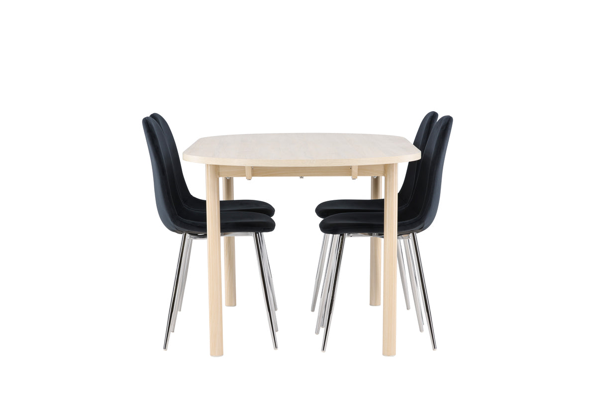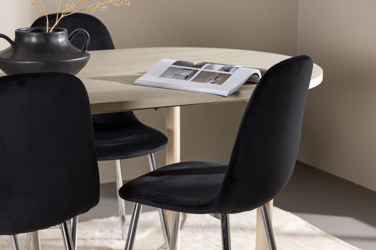 En elegant matstol i lyxig anda! Polar har en helklädd design med ben i kromad metall, en lätt rundad rygg och sits i smäckert svart sammetstyg med mjuk stoppning för extra komfort. Här slipper du kompromissa mellan bekvämlighet och design. Matcha med ett av våra snygga matbord så får du en komplett matgrupp till hemmets hjärta! Utforska Andy - det tidlösa matbordet som blir en perfekt plats för sällskapliga måltider. Med sin vittvättade färg ger Andy en jordnära och neutral känsla till din matsal eller kök. Bordets ben i stål och bordsskiva i MDF material kombinerar stilrenhet med robusthet, vilket gör det till en pålitlig möbel för många år framöver. Med generösa mått på 180x90 cm finns det gott om plats för familj och vänner att samlas runt bordet och njuta av god mat och trevligt sällskap. Andy har en stilren design som passar perfekt in i olika inredningsstilar och skapar en lugn och avslappnad atmosfär i rummet. Oavsett om du använder det för vardagliga måltider eller för festliga tillfällen, kommer Andy att vara en tidlös och stilfull tillägg till ditt hem. Ge din inredning en touch av enkel elegans med matbordet Andy.