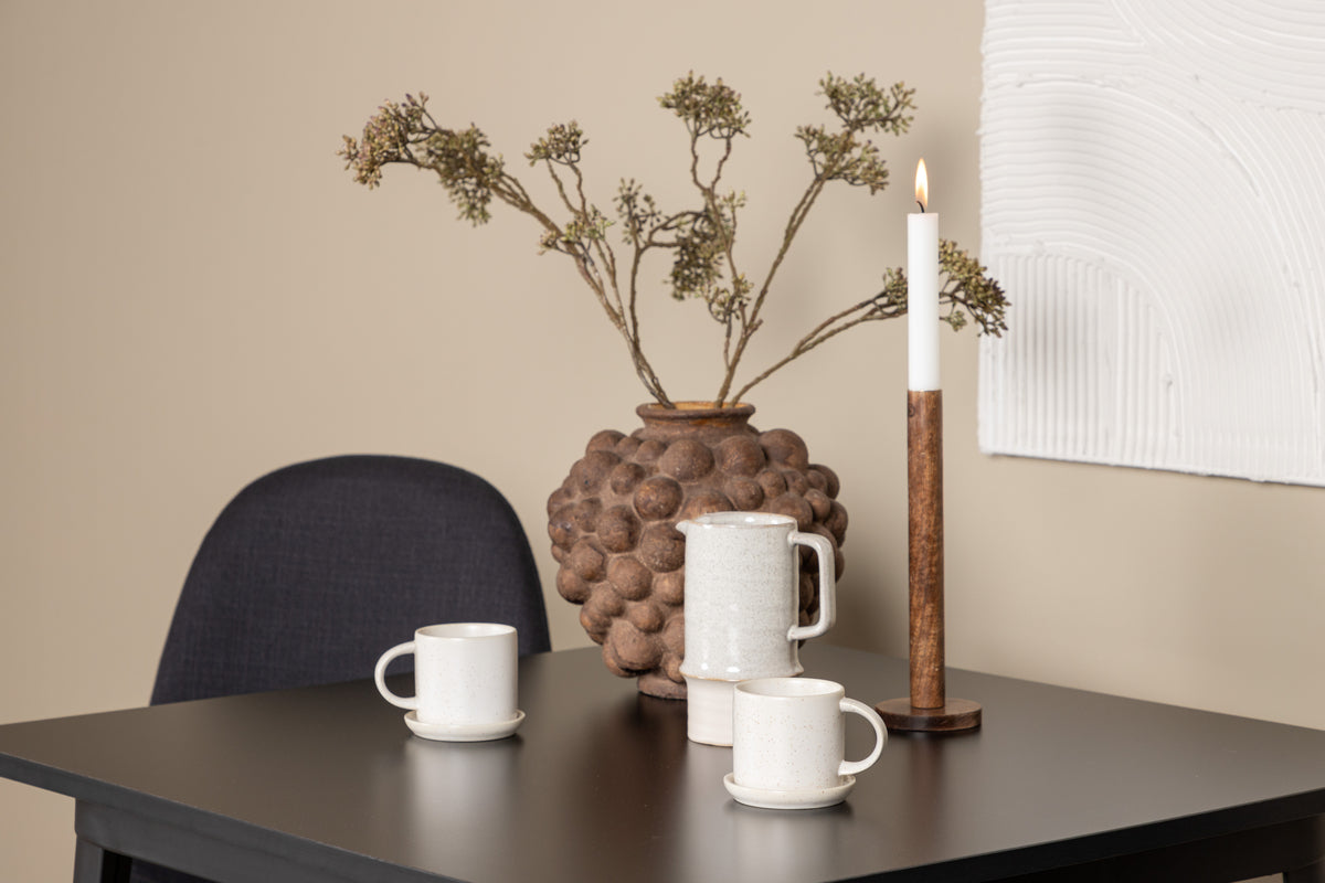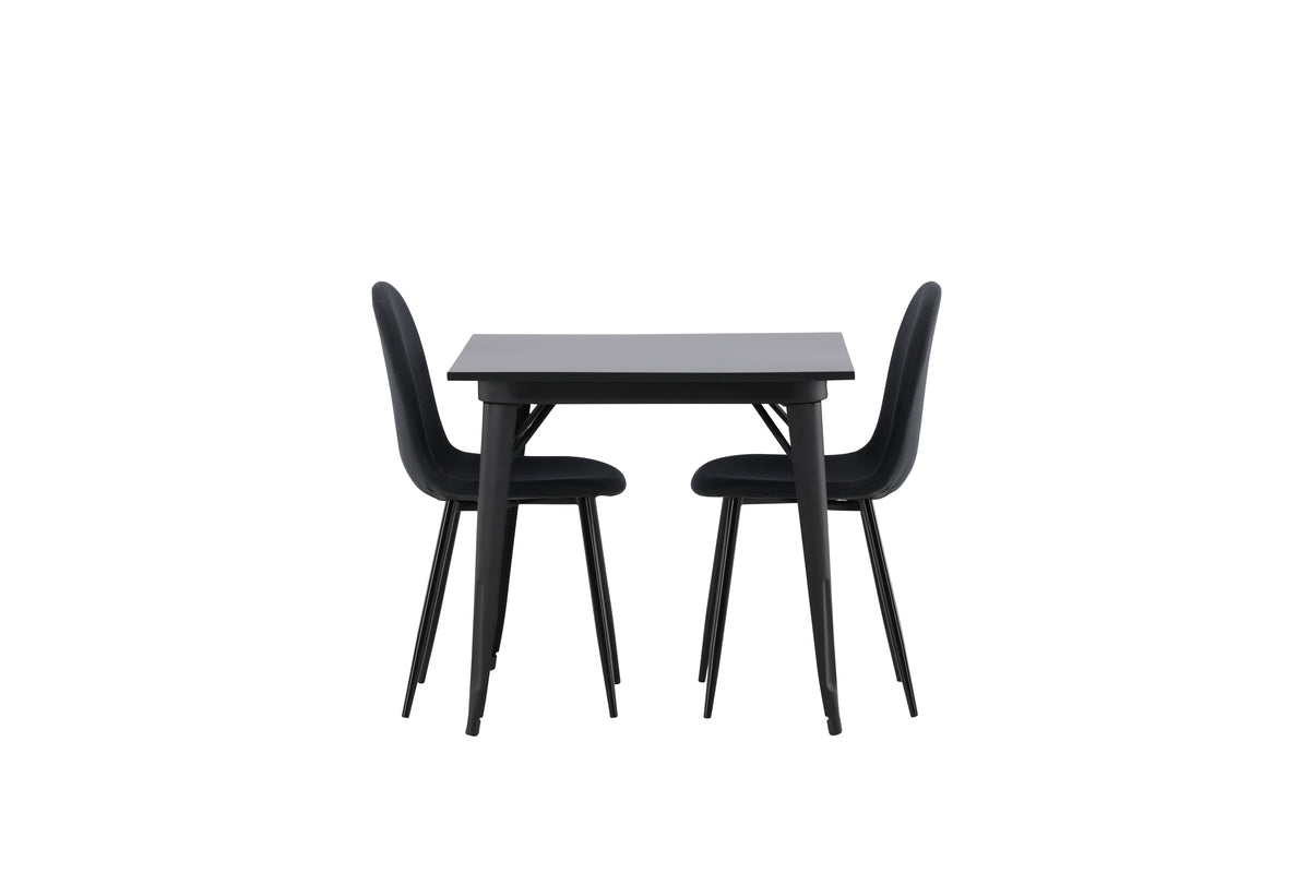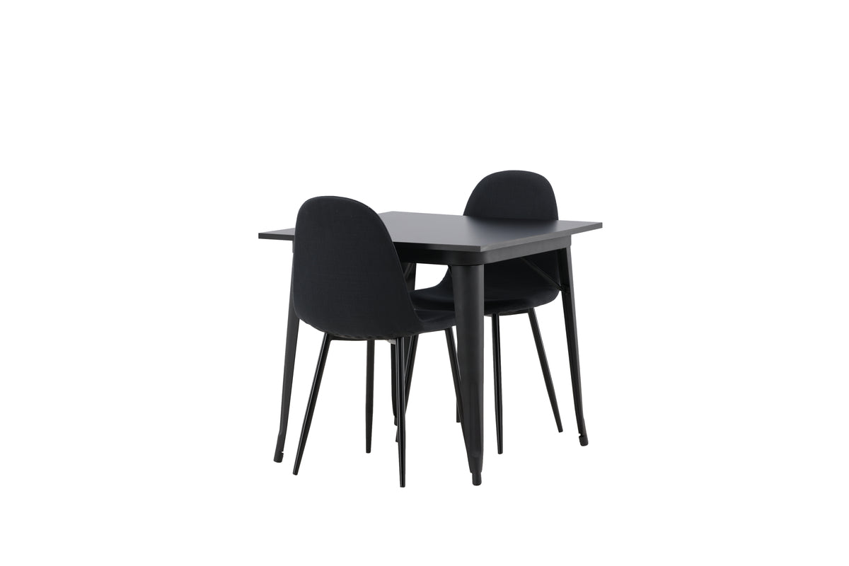 En charmig matgrupp för två - perfekt för det lilla köket! Det här matbordet från serien Tempe har en klassisk, kvadratisk utformning och en tidlös svart kulör. Bordsskivan är i svart MDF och bordsbenen i svart metall. Här i smakfull kombination med två matstolar från serien Polar i sotig nyans. Stolen har en helklädd design med en rundad rygg och sits i svart polyestertyg med mjuk stoppning och ben i svart pulverlackerad metall. Slipp kompromissa mellan komfort och design!