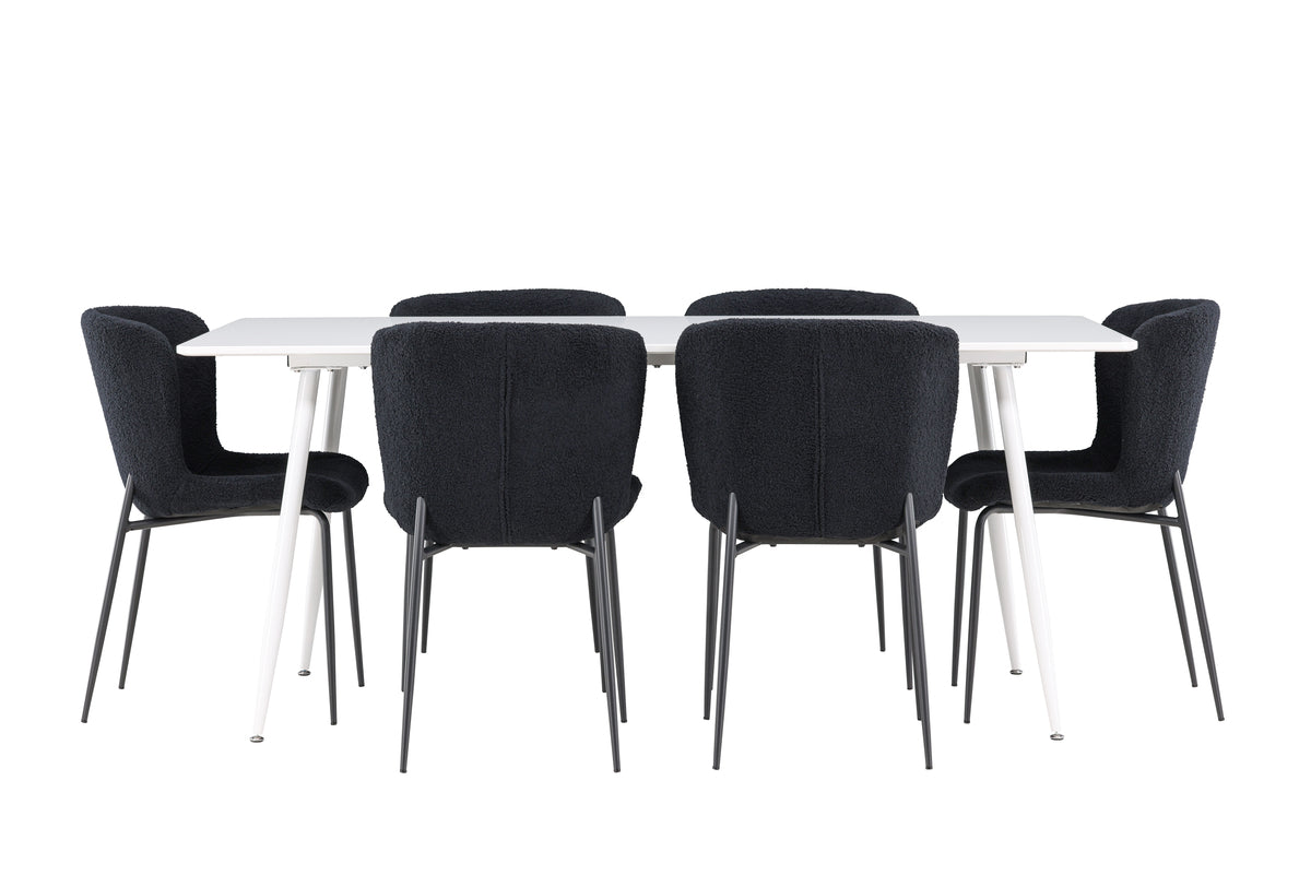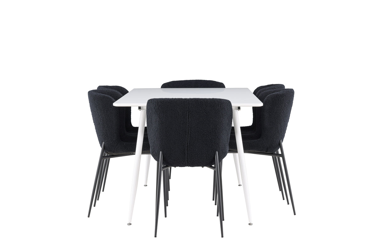Upptäck Modesto matstolen - en perfekt kombination av elegans och modernitet för ditt matbord. Med en sits klädd i mjukt teddymaterial och ben tillverkade av stål erbjuder Modesto komfort. Den eleganta svarta sitsen matchas perfekt av de svarta benen, vilket ger stolen en tidlös och stilren design. Med sin enkla och moderna estetik passar Modesto perfekt in i olika inredningsstilar och lämnar ett bestående intryck i ditt hem. Ge din matplats en uppdaterad känsla av elegans och stil med Modesto matstolen. En perfekt balans mellan tidlös design och moderna detaljer, vilket gör den till det perfekta valet för både vardagsmiddagar och festliga tillfällen. Upptäck Silar matbordet - ett elegant och mångsidigt möbelstycke för vänner och familj. Med generösa mått på 180x90 cm erbjuder Silar tillräckligt med plats för att välkomna dina nära och kära. Det vita bordet ger en ljus och luftig känsla till rummet och skapar en inbjudande atmosfär för måltider och samvaro. Silar matbordet är inte bara praktiskt, det är också trendigt och passar perfekt in i moderna inredningar. Skapa minnen och dela goda stunder med vänner och familj vid Silar matbordet. Oavsett om det är för vardagliga måltider eller festliga tillfällen, kommer detta matbord att bli en central punkt i ditt hem där gemenskap och glädje frodas.