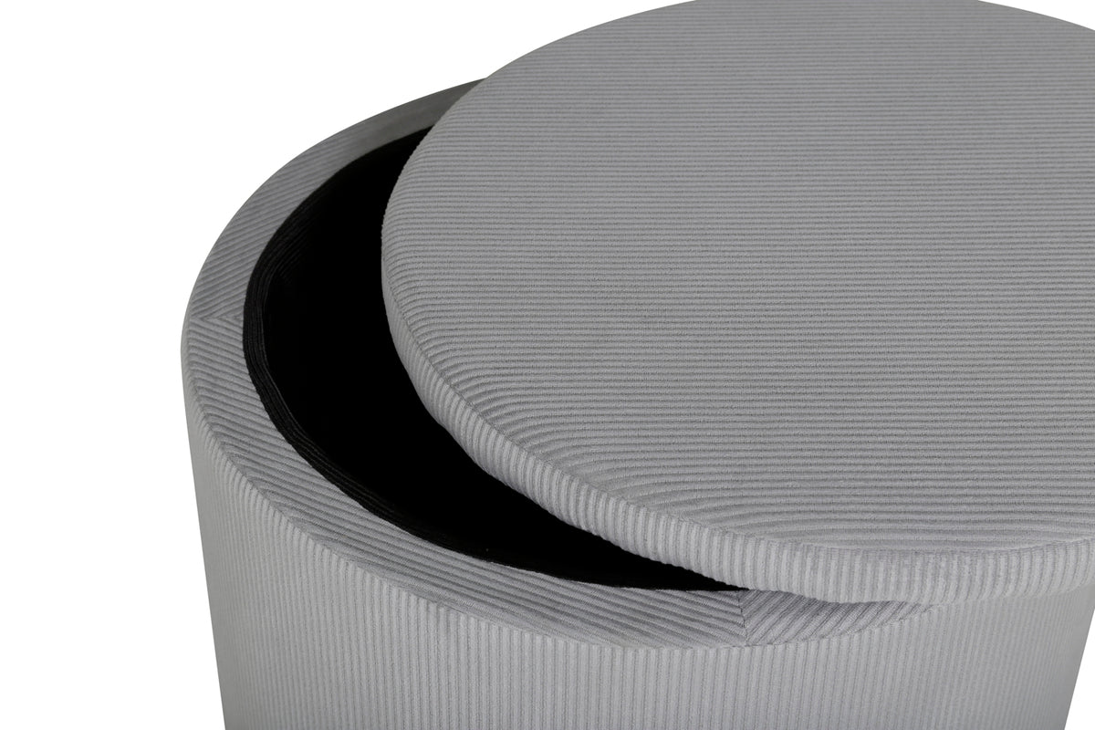 Kombinera modern design med 50-tals nostalgi med den här manchesterpallen i grå kulör! Dunken Sittpuff är både lättplacerad, praktisk och iögonfallande. Puffen är cylinderformad med ett avtagbart lock som möjliggör dold förvaring och fungerar i övrigt utmärkt som både fotpall, avställningsyta eller extra sittplats. Tillverkad i materialen skum, bomullsfiber, tyg och böjt trä. Puffens mått: Höjd: 43 cm, diameter: 51 cm. Skötselråd: Sammet har en tendens till att få tryckmärken när luggen lägger sig ner. Avtrycken kan göra att tyget ser slitet ut, vilket här helt normalt för den här typen av material. Beroende på hur ljuset faller kan tyget skifta i flertalet olika nyanser.