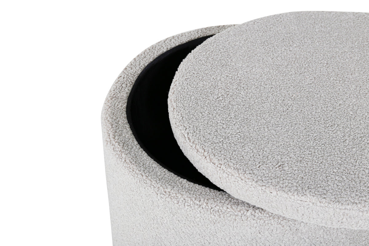 Möblera ditt hem smart, genomtänkt och stilmedvetet med en lättplacerad sittpuff från serien Dunken! Med sin raka cylinderformade design och lurviga teddytyg i trendig greige kulör skapar den ett hemtrevligt och modesäkert intryck. Använd som fotpall att vila fötterna på, som extra sittplats när gästerna blir många eller placera som en stilikon intill övrigt möblemang - bara fantasin sätter gränser! Locket är avtagbart och möjliggör dold förvaring. Tillverkad i materialen skum, bomullsfiber, teddytyg, böjt trä och stål. Puffens mått: Höjd: 42,5 cm, diameter: 35 cm. Skötselråd: Ta bort fläckar med en gång, gnid inte utan försökt suga upp varsamt med en trasa. Skulle fläckarna inte gå bort, prova ett fläckborttagningsmedel som du först provat på en mindre synlig del av tyget.