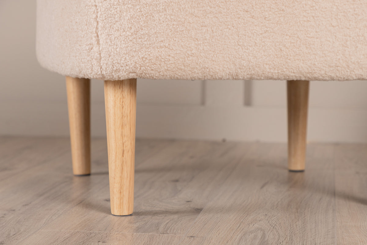 En trendig inredningsdröm som lyfter den varma och inbjudande känslan till rummet! Den här sittpuffen från serien Salina imponerar med sin lyxiga look och blir till en snygg inredningsdetalj. Tillverkad i benvit kulör av gosigt fleecetyg, trä och metall med djuphäftade knappar i tyget som blir till en läcker detalj. Puffen har en låg design med träfärgade ben som bidrar till en luftigare atmosfär och möjliggör enkel dammsugning. Höj stilnivån i ditt hem!