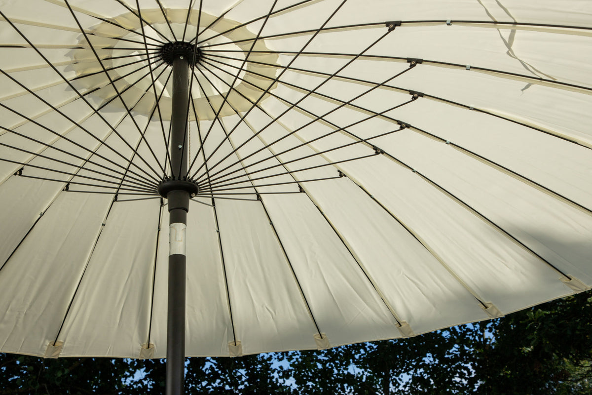 Rama in din utemiljö med Palmetto – ett parasoll i en modern stil som passar både till utemöblerna vid uteplatsen och bredvid solstolen. Flytta parasollet till den plats som passar dig när du vill svalka dig i skuggan ett tag! Mått 270 cm Skötselråd: För våra parasoll rekommenderar vi att man använder sig av parasollskydd. Dra på överdraget när parasollet inte används, det mot sol och minskar därmed risken för solblekning. Överdraget används när parasollduken är torr, annars finns det risk för mögel. Lämna aldrig ett parasoll uppfält när det inte används. Hängparasoll är många gånger känsligare för vindar än vad traditionella parasoll (med pelaren mitt under duken) är.