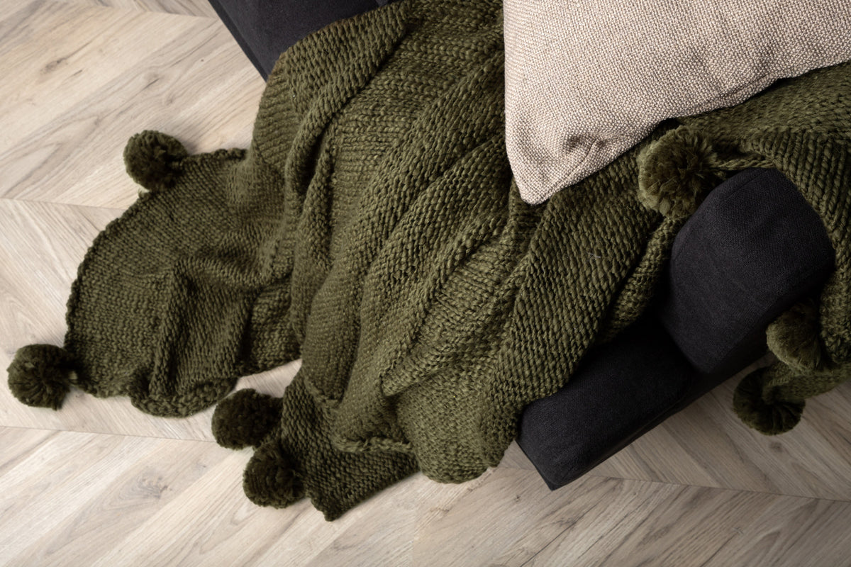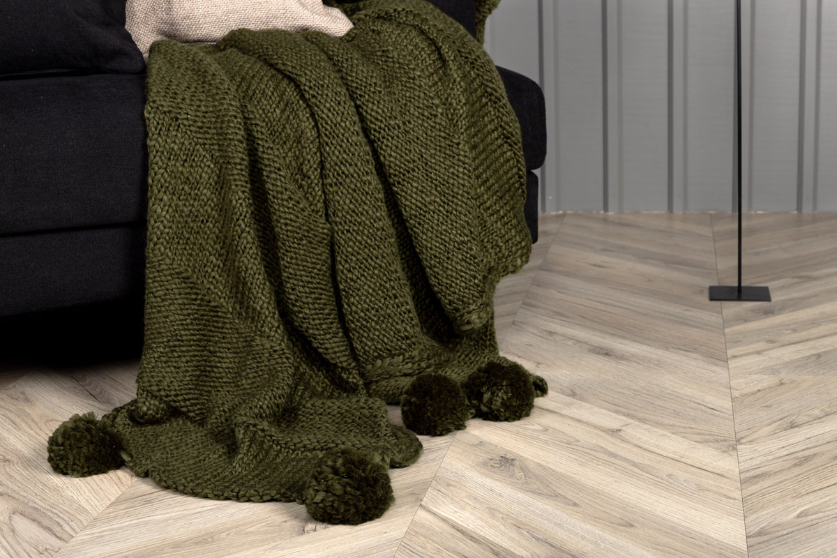 Den här skogsgröna pläden skapar ett inbjudande och gosigt blickfång i ditt vardagsrum! Anny är en underbart skön och gosig pläd med smickrande detaljer och stilren design. Tillverkad i akryl i en smäcker grön kulör och har snygga bollar i ändarna. Mått: 130x170. Skötselråd: Maskintvätt 30 grader, hängtorka. Höj gosfaktorn i ditt hem - det är de små detaljerna som gör skillnad!