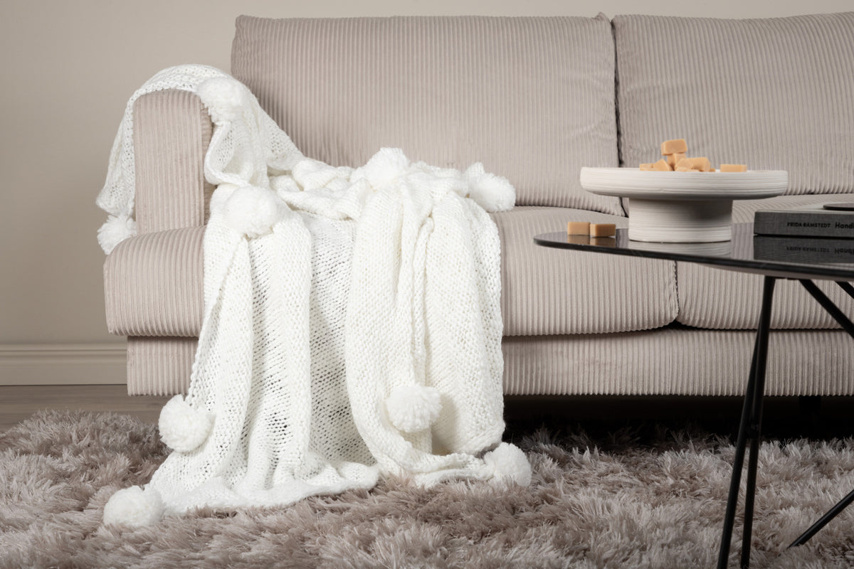 Det är de små detaljerna som gör skillnad! Den här underbara pläden från serien Anny i gräddvit kulör skapar en mysig atmosfär i ditt hem. Pläden är i akryl och har dekorativa bollar i ändarna som ger filten det där lilla extra. Mått: 130x170. Skötselråd: Maskintvätt 30 grader, hängtorka. Häng över soffkanten eller lägg på sängen för att skapa ett gosigt blickfång!