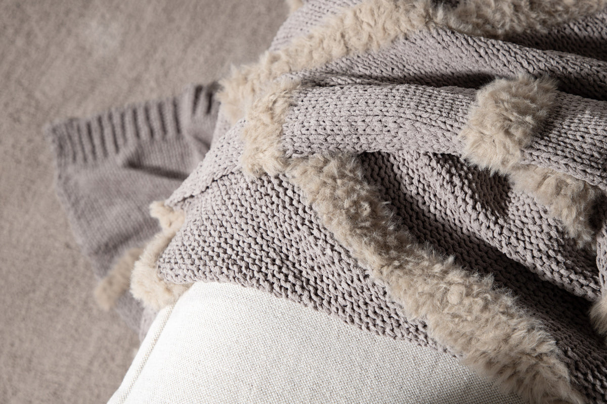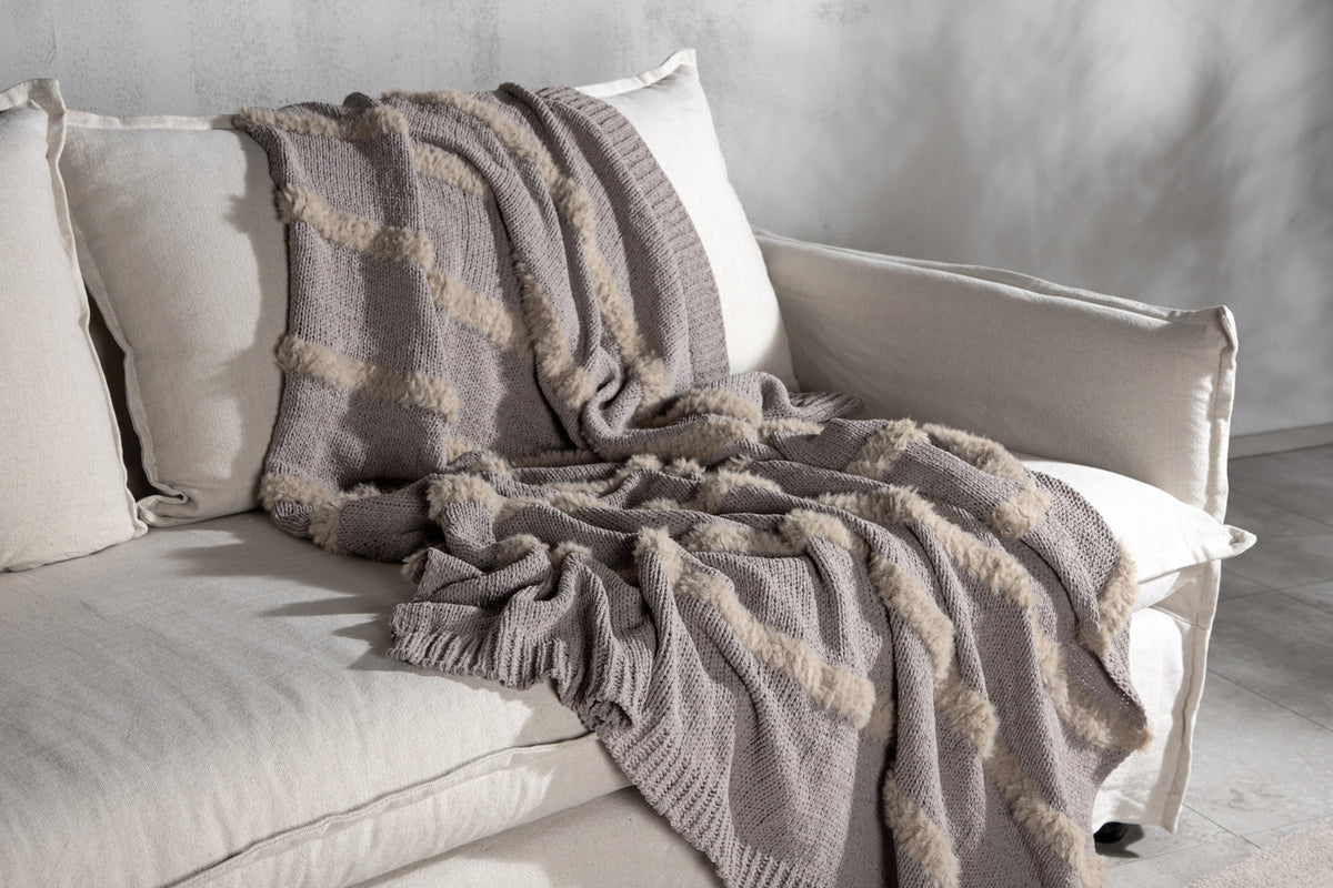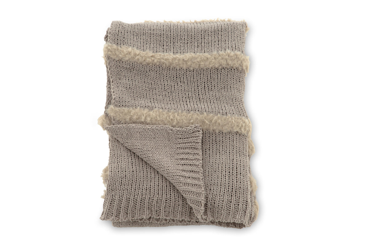 Katleen är pläden som garanterat höjer mysfaktorn i ditt hem! Pläden har ett linjerat mönster av tuftat fuskpäls och tillverkad av polyetser och chenille. Den behagliga grå kulören smälter in i inredningen och filtens mjuka kvaliteer håller dig varm under hela filmkvällen. Mått 130x170 cm.