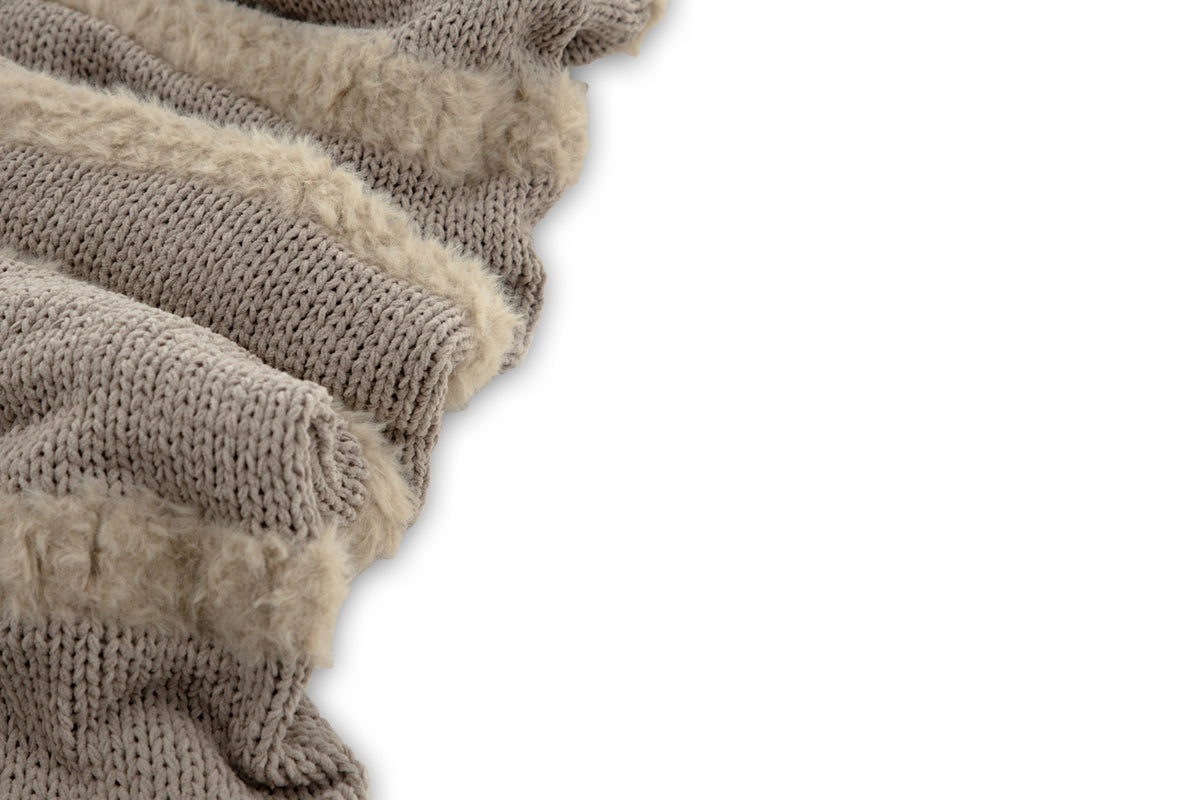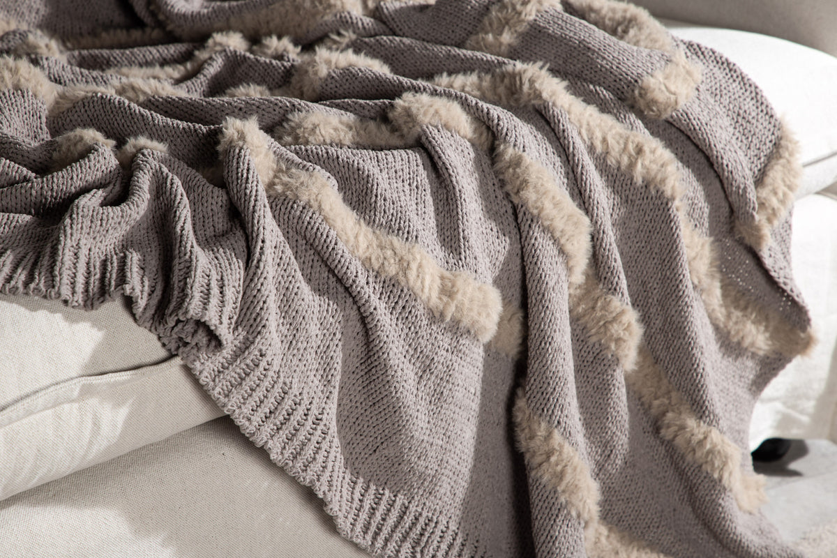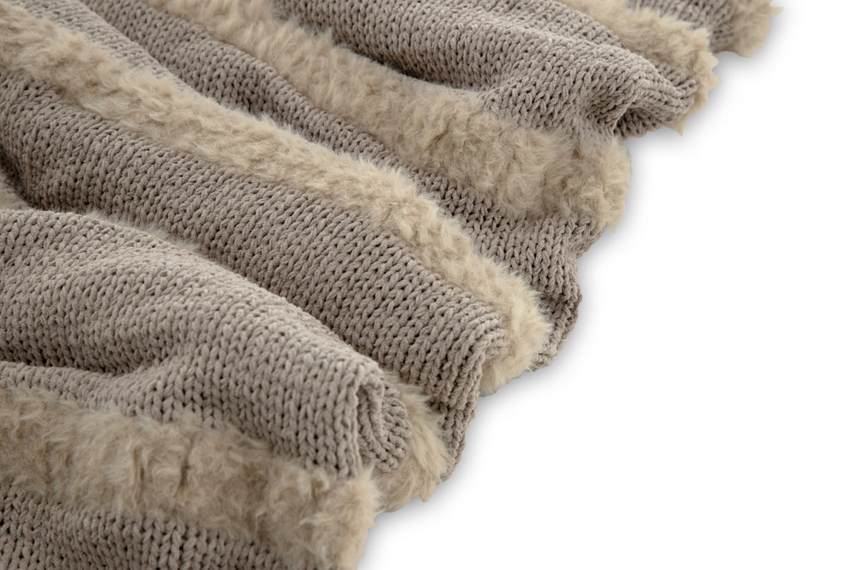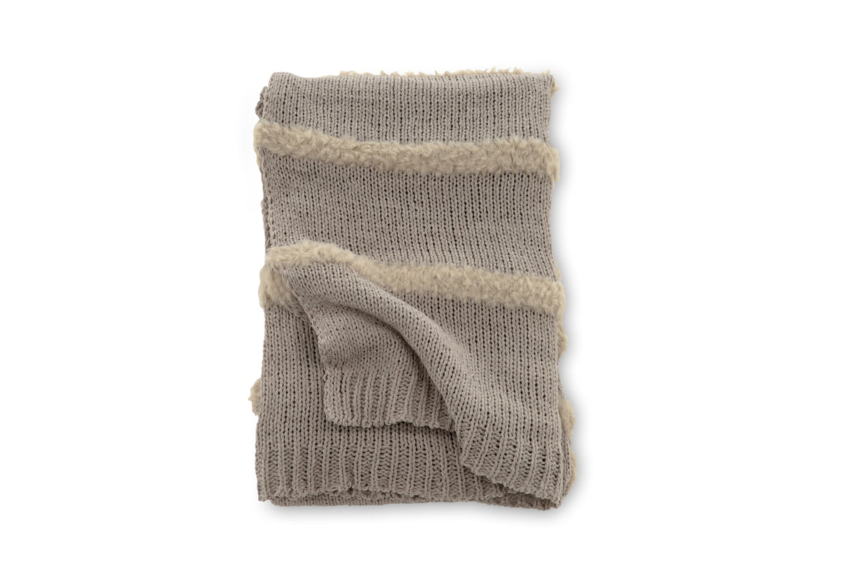 Katleen är pläden som garanterat höjer mysfaktorn i ditt hem! Pläden har ett linjerat mönster av tuftat fuskpäls och tillverkad av polyetser och chenille. Den behagliga grå kulören smälter in i inredningen och filtens mjuka kvaliteer håller dig varm under hela filmkvällen. Mått 130x170 cm.