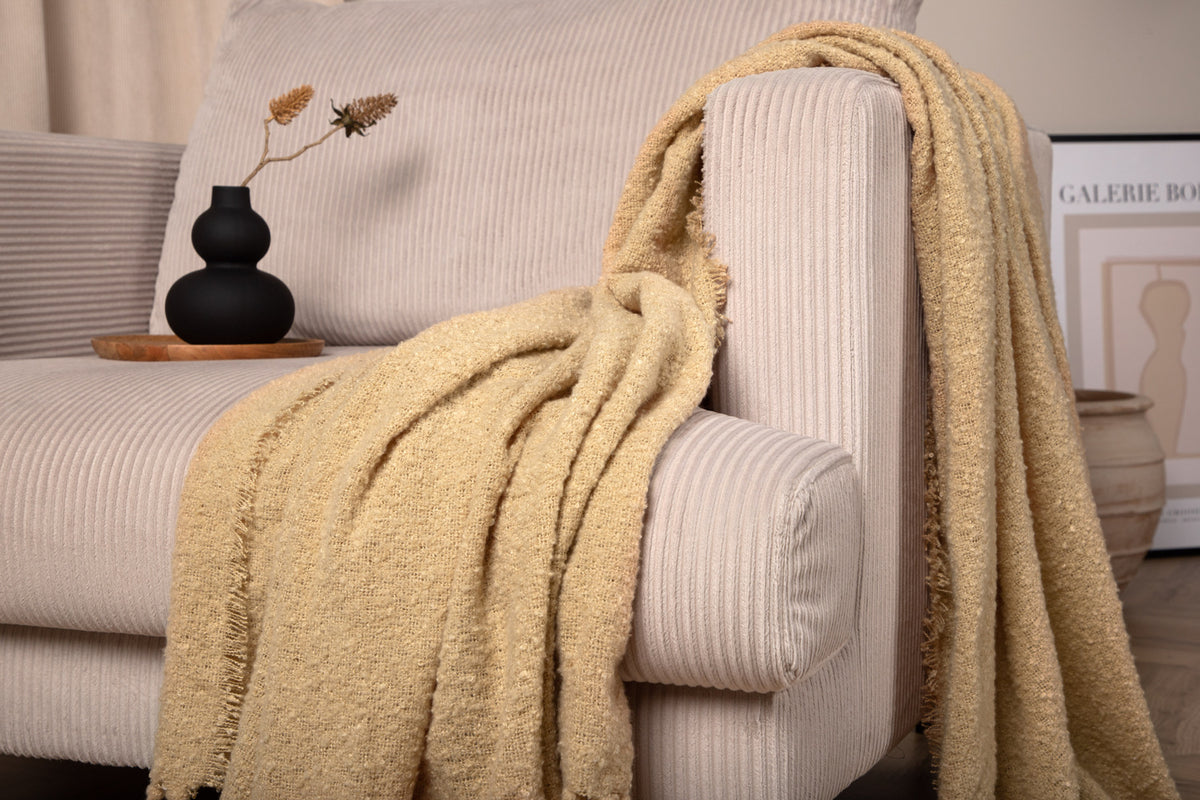 Pläden Stanly är tillverkad i polyester och har en stilren och följsam känsla i ett tunnare material. Pläden finns i fem olika jordnära kulörer som du enklelt matchar med annan inredning i hemmet. Använd som dekorativ inredning på sängen eller soffan, eller vira in dig i pläden när du läser en god bok framför brasan för en mysigare känsla!