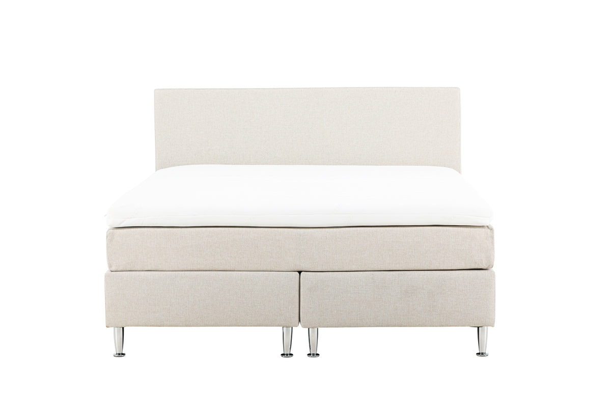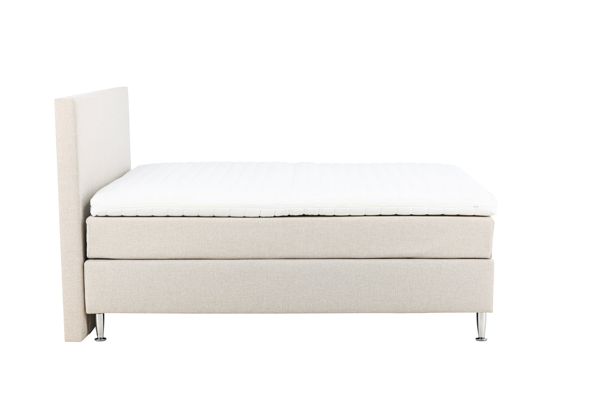 Upplev ultimat komfort och lyx i ditt sovrum med sängen Toledo i en elegant beige nyans. Denna kontinentalsäng är det perfekta tillskottet till ditt hem och erbjuder en rofylld oas för avkoppling och en natts god sömn. Med sina generösa mått på 180x200 cm har Toledo gott om plats för dig och din partner att sträcka ut er och njuta av en härlig natt. Toledo är inte bara en säng, det är en upplevelse av lyx och elegans. Den stilrena designen och den vackra beige färgen ger ditt sovrum en sofistikerad atmosfär som inbjuder till avkoppling. Sängens kontinentala konstruktion med en stabil träram och två separata madrasser ger optimal stöd och komfort, vilket resulterar i en bättre sömnkvalitet. Den mjuka och bekväma madrassen anpassar sig efter din kropp och minskar tryckpunkter, medan den extra tjocka bäddmadrassen ger en skön känsla av lyx. Bädda ner dig i Toledo efter en lång dag och känn hur stress och spänning lämnar din kropp. Du förtjänar en god nattsömn, och Toledo är nyckeln till en avslappnad och återhämtande sömnupplevelse. Satsa på kvalitet och komfort med Toledo, sängen som tar din sömn till en helt ny nivå av lyx och avkoppling.Oavsett om du föredrar en något mjukare eller fastare säng anpassar sig den efter din kropp, vilket minimerar tryckpunkter och främjar en djup och fridfull sömn. Ge dig själv den bästa möjliga starten på varje dag genom att välja Toledo kontinentalsäng i beige.