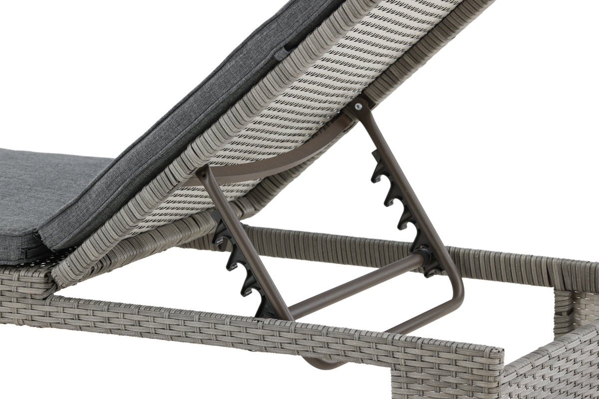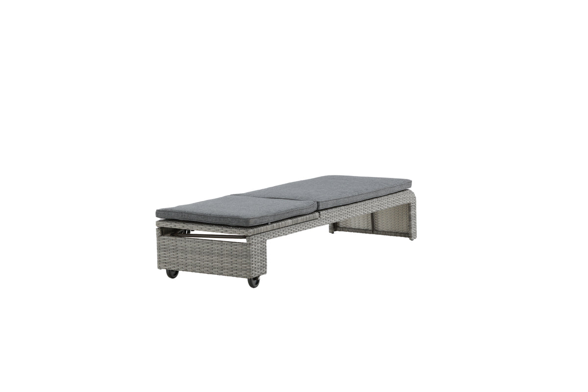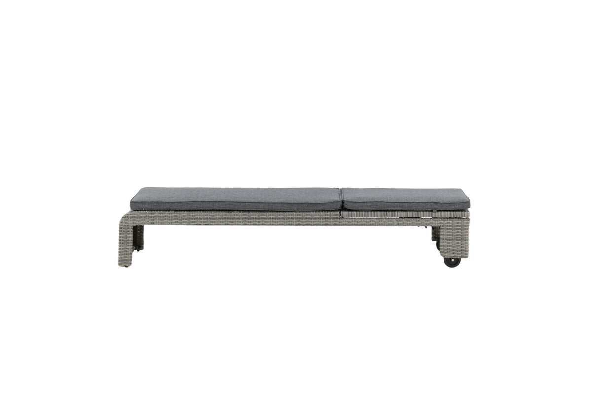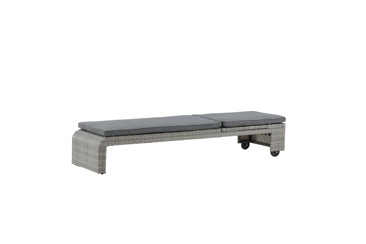Stilren och lyxig design gör att den här solsängen från serien London skapar ett trivsamt blickfång på din uteplats. Här får du en grå solsäng med grå dyna, hjul och justerbart ryggstöd för optimala vilopositionen. Solsängen är tillverkad av konstrotting vilket gör den slitstark i utomhusmiljö. Robust, stabil och bekväm – här kan du njuta länge av lediga stunder på sommarens soliga dagar. Skötselråd: Konstrotting är ett plastmaterial som passar alldeles utmärkt för vårt skandinaviska klimat. Materialet är UV-beständigt och tåler väder och vind. Att det är UV-beständigt gör att möblerna inte bleknas, däremot rekommenderar vi alltid att förvara möblerna under ett möbelskydd eller på annat vis torrt och svalt – för att förlänga livslängden.