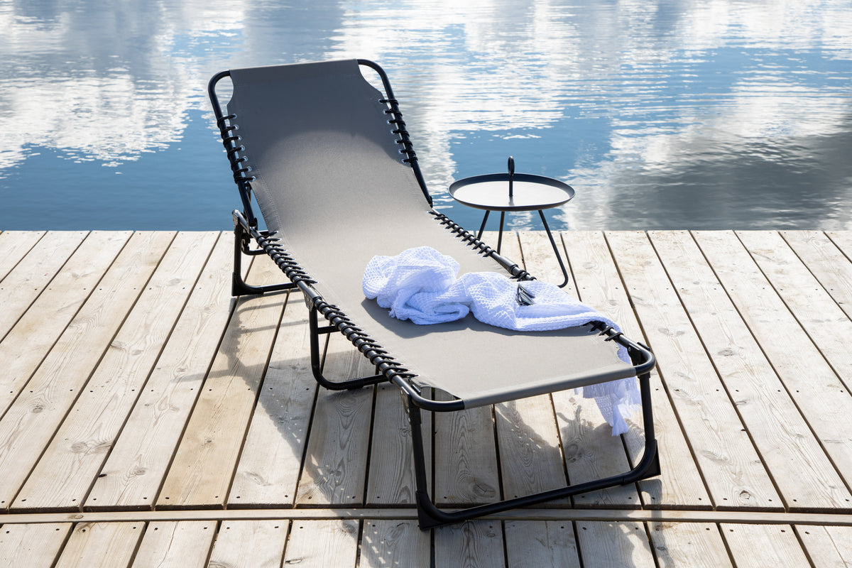 Solen strålar, fåglarna kvittrar, och du längtar efter en stunds avkoppling utomhus. Med solsängen Majken kan du omvandla varje plats till din egen personliga oas. Majken är en stilfull och bekväm solsäng som är designad för att ge dig den ultimata sol- och avkopplingsupplevelsen. Majken är tillverkad med en stadig stålstomme. Klädseln är tillverkad av textilene i en elegant svart/grå färgkombination. Den mjuka och behagliga ytan ger en skön känsla mot huden och är samtidigt enkel att rengöra och underhålla. Det justerbara ryggstödet på Majken ger dig full kontroll över din sitt- eller liggställning, så du kan anpassa den efter dina egna preferenser. Oavsett om du föredrar att ligga platt och sola eller att luta ryggstödet upp för att läsa en bok, kommer Majken att vara din trogna följeslagare. Majken är också enkel att transportera och placera var som helst. Ta med den till din trädgård, terrass, eller varför inte till bryggan vid vattnet? Den kompakta designen gör det enkelt att flytta solsängen precis dit du vill ha den. Så varför vänta? Placera solsängen Majken på bryggan, slappna av och låt solens strålar omfamna dig medan du njuter av en stund i frisk luft. Med Majken blir varje dag en dag att komma ihåg, och din egen lilla oas är alltid nära till hands. Köp din Majken solsäng idag och ge dig själv den avkoppling du förtjänar.