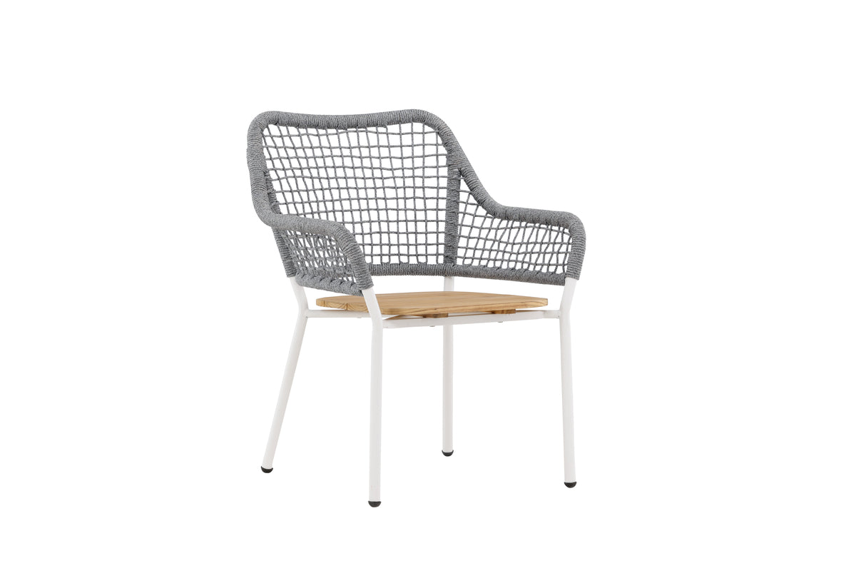Möt Amora loungestolen, en elegant skapelse som kombinerar stil och komfort för att skapa den perfekta platsen att koppla av utomhus. Med en snygg design och en kombination av material är Amora en möbel som inte bara fångar ögat utan också bjuder in till avkopplande stunder. Stommen i stål ger Amora en modern och stadig bas, medan stolsitsen i teak och ryggstödet i rep ger en harmonisk fusion av natur och nyskapande design. Den mjuka beige färgen på sitsen och det eleganta vita repet skapar en lugn och inbjudande atmosfär. Amora loungestolen är skapad för att vara mer än bara en möbel – den är en destination för avkoppling och samvaro. Slå er ner till bords och njut av varje ögonblick i denna vackert balanserade stol. Oavsett om det är på terrassen, balkongen eller i trädgården, kommer Amora att bli en favoritplats för avkoppling och socialt umgänge. Upplev skönheten i snygg design och komfort med Amora loungestolen – där varje stund blir en njutning.