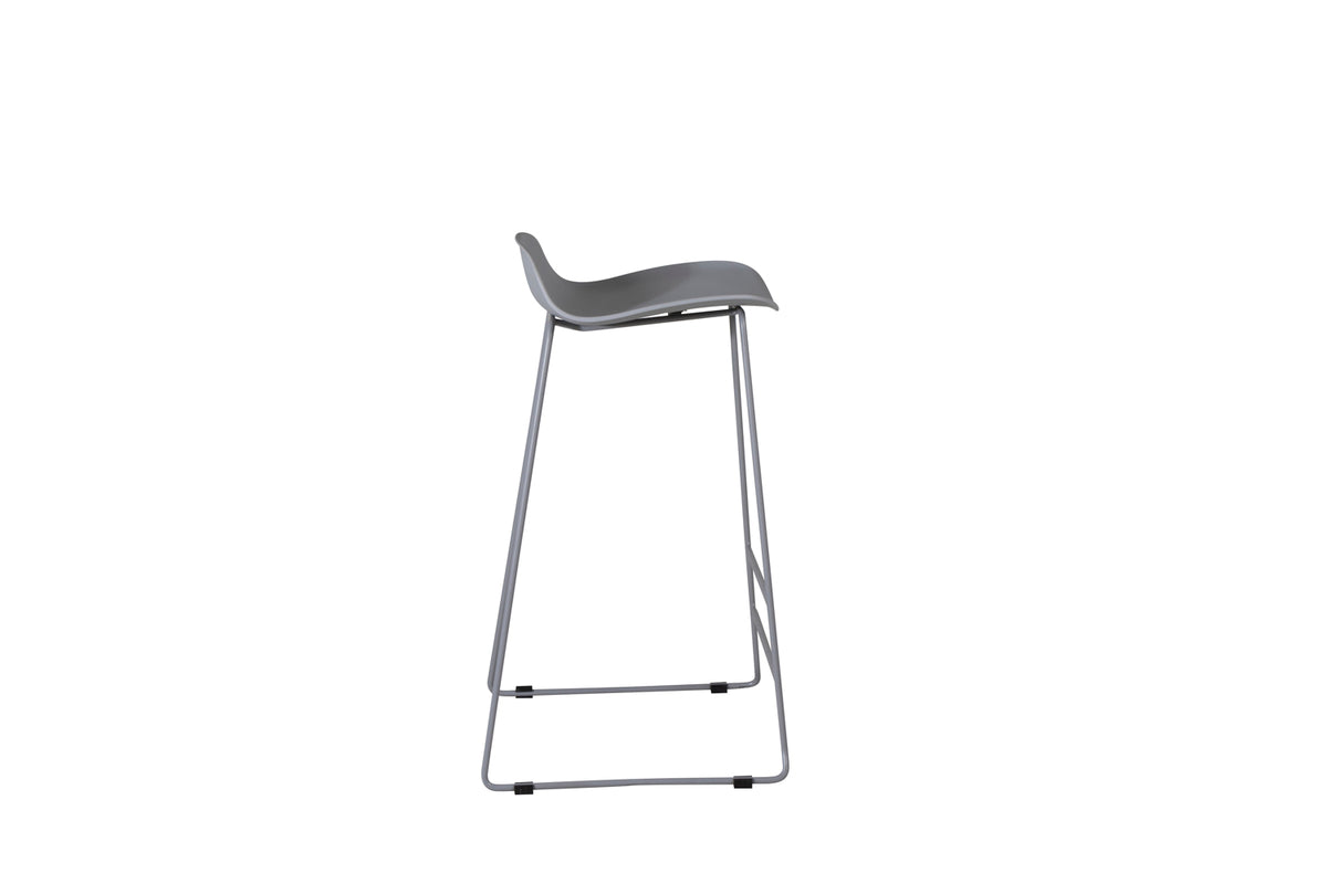 En stilren matstol i minimalistisk skandinavisk design från serien Wave kommer garanterat göra succé vid barskänken! Den här barstolen kommer i en behaglig grå kulör, med grå pulverlackerad metallställning, integrerat fotstöd för extra sittkomfort och låg rygg och sits i grå helgjuten plast. Lättare montering krävs. Skötselråd: Plast är ett tacksamt material att torka av och rengöra. Använd en fuktig trasa och ett milt rengöringsmedel för rengöring.