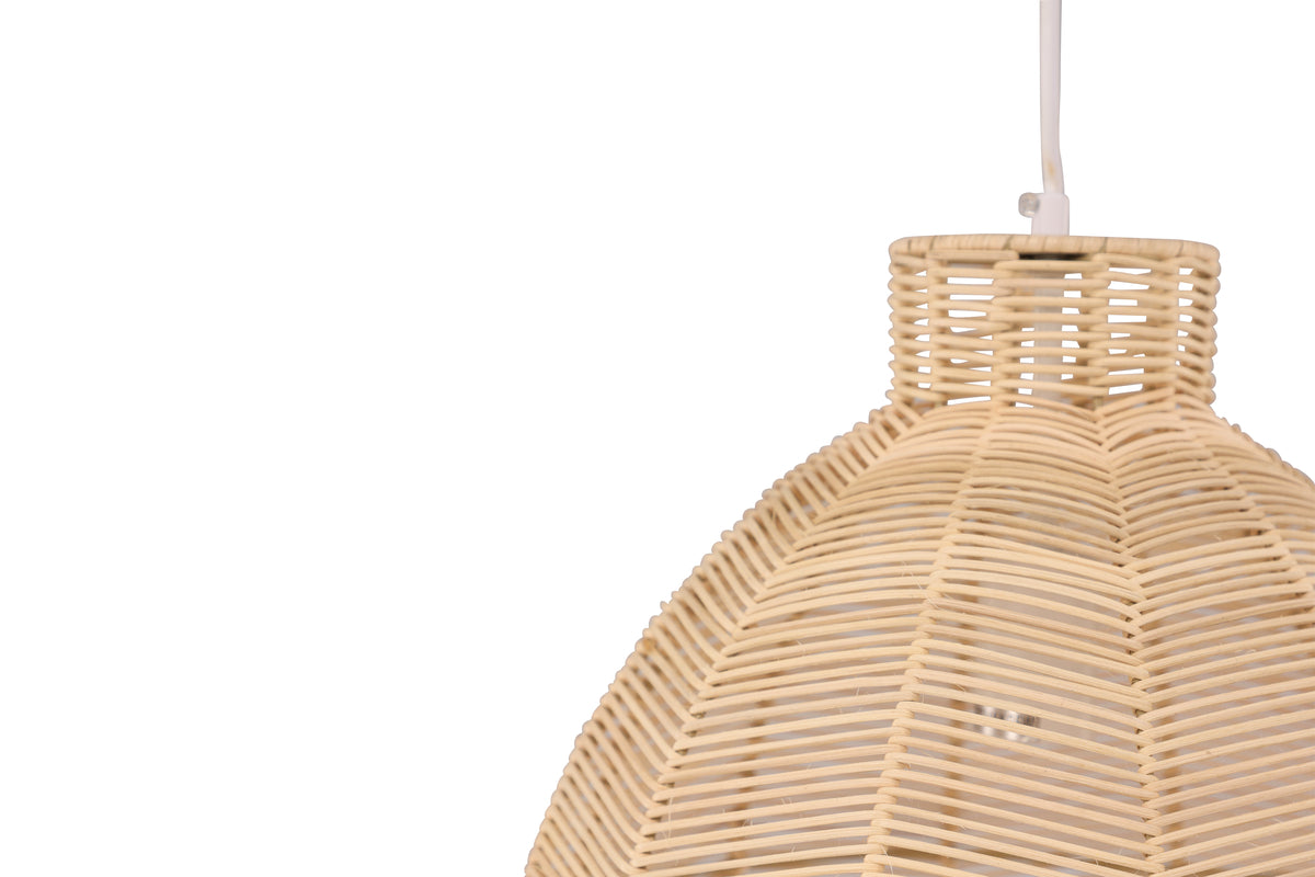 Med taklampan Tours får du en trendig lampa som står sig över tid! Lamskärmen är helt i rotting och har en fin jordnära färg som ger ett lugn till rummet. Lampan har ett vackert sken som ger en varm och mysig känsla vilket gör den perfekt att placera över matbordet, för långa stämningsfulla middagar eller i sovrummet för en avslappnande känsla.Mått40x40x40