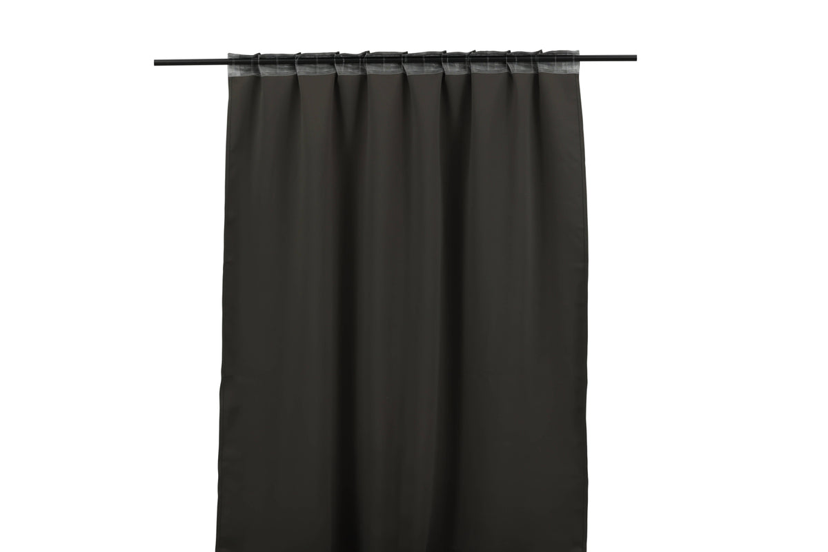 Med Evelyn mörkläggniningsgardin i en härlig mörkgrå elegant kulör tillverkad i polyester skapar du enkelt en lyxig känsla hemma. Den jordnära kulören smälter på ett harmoniskt sätt ihop med övrig inredning och det rejäla tyget stänger på ett snyggt sätt ute starkt solljus och håller hemmet svalt och skönt. Vi rekommenderar vid fläckar att använda fläckborttagning och vädra textilen ofta för att längre bevara färg och form. Vid maskintvätt rekommenderar vi att tvätta gardinen i 30 grader. Mått: 135x240. Innehåller 2 styck gardinlängder.