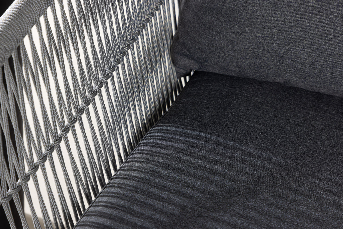 Chania - Trendig modern soffgrupp med fokus på bekvämlighet. Soffgruppen består av en hörnsoffa med fyra sittplatser och en hörndel inklusive tjocka slitstarka mörkgrå dynor. Till soffan ingår även ett lågt soffbord tillverkat helt i akacia. Soffgruppen är tillverkad med en stomme i aluminium med akacia ben samt är rygg och sidor flätade i ett ljusgrått rep som ger en stilren design. Hörnsoffans detaljer i akacia tillsammans med soffbordet skapar en exklusiv helhetskänsla. Skötselråd: För att dina utemöbler i Akacia/hårdträ ska bibehålla sin finish bör de oljebehandlas. Eftersom träslagen i sig inte är lika feta av naturen behöver de oljas lite då och då, även under säsong.