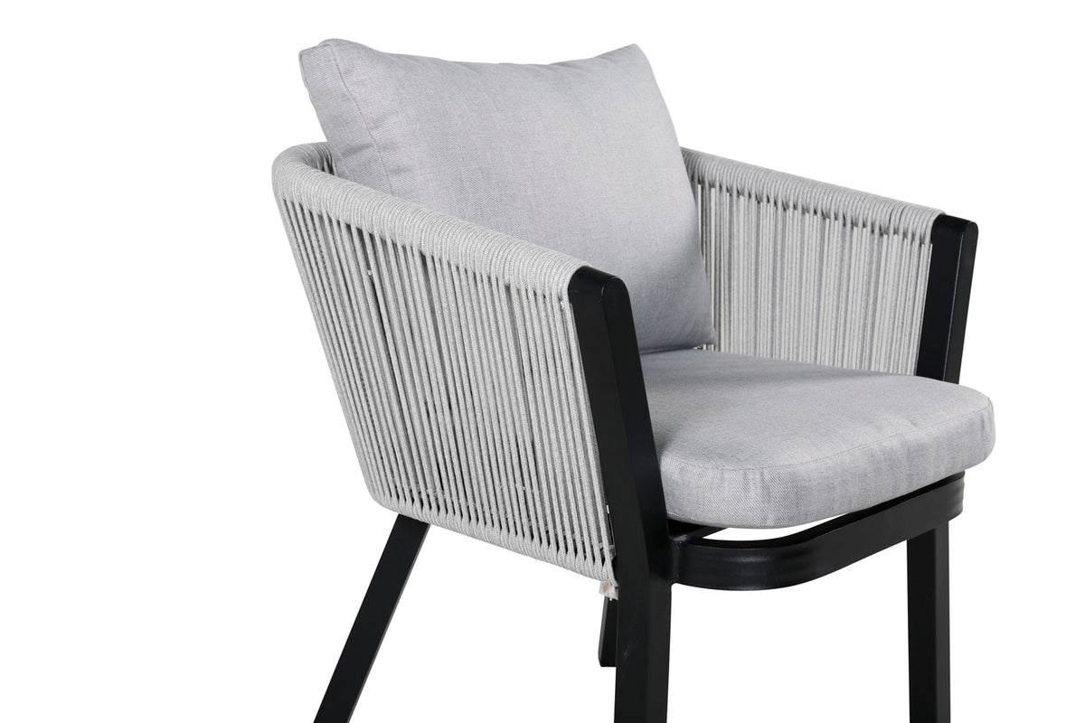 Virya matstol är verkligen något alldeles extra! Det enkla i stolen lyfts av de fina detaljerna och korgliknande design skapar en inbjudande känsla. En favorit till långa middagar i uterummet eller solitär i myshörnan! Skötselråd: Våra rep är kvalitetsspunna polyesterrep som är lätta att rengöra. Möblerna är behandlade för att klara 500-2000 timmar. Vi rekommenderar såpa och vatten för rengöring. Låt lufttorka. För de områdena som är svårare att komma åt kan en liten borste användas försiktigt. Använd aldrig högtryckstvätt eller starka kemikalier för att rengöra repet.