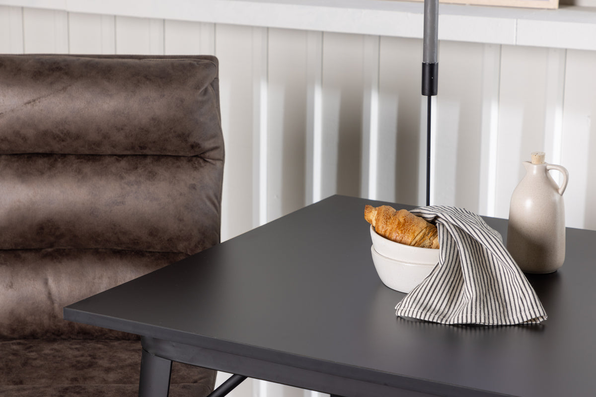 Visst vill man bara slå sig ner här och sitta bekvämt i timmar! Vår kvadratiska matbord Tempe har en nätt storlek och trendig, Skandinavisk utformning. Tillverkad med en bordsskiva i svart MDF och bordsben i svart metall. Här i kombination med våra otroligt bekväma, bruna matstolar från serien Zizo. Den här stolen har en helklädd sits i brunt microfiber, som är stoppad med mjuka kuddar för extra komfort. Stolsbenen är minimalistiska i svart metall. Slipp kompromissa mellan stil och komfort! Bordets mått: 80x80cm.