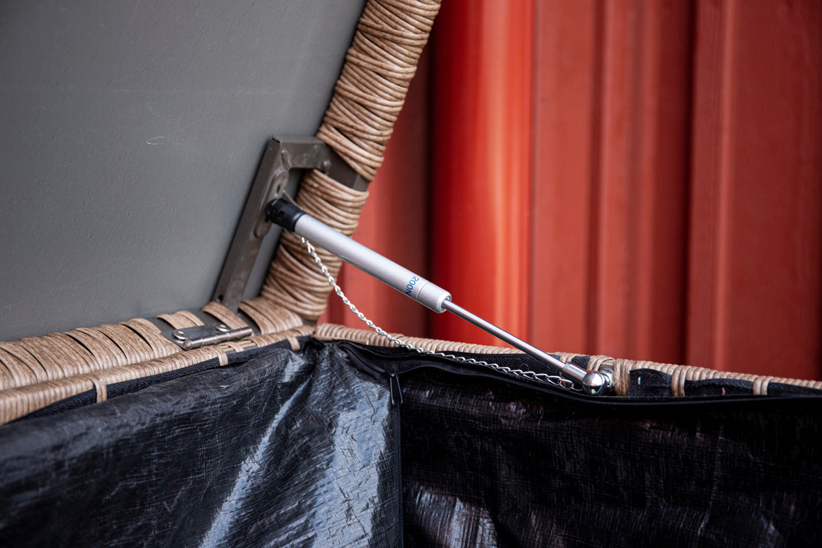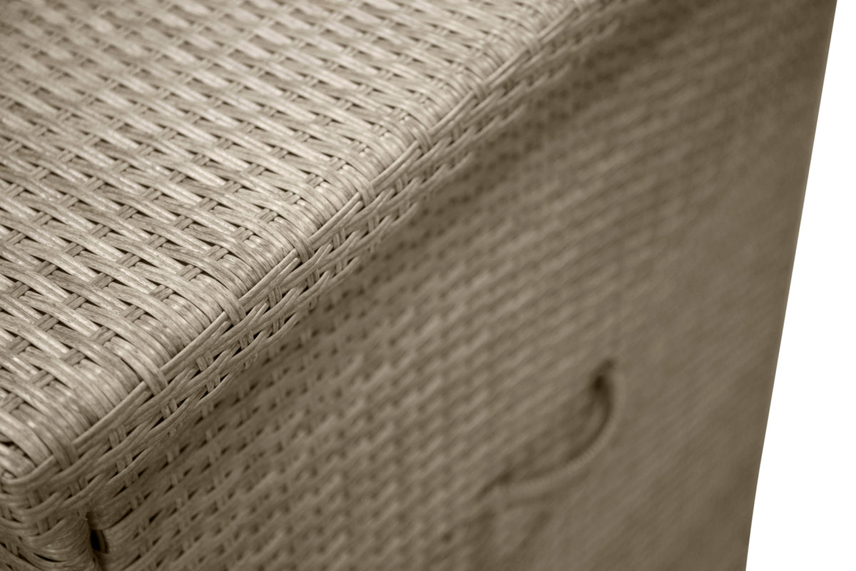 Lämna inte dina dynor ute i regn och rusk! Med en snygg och praktisk dynbox i beige kulör från serien Amazon skyddar du dynorna och kan förlänga livslängden. Den fungerar även utmärkt till förvaring av övriga utomhusartiklar - ett smart tillskott till uteplatsen helt enkelt! Skötselråd: Konstrotting är ett plastmaterial som passar alldeles utmärkt för vårt skandinaviska klimat. Materialet är UV-beständigt och tåler väder och vind. Att det är UV-beständigt gör att möblerna inte bleknas, däremot rekommenderar vi alltid att förvara möblerna under ett möbelskydd eller på annat vis torrt och svalt – för att förlänga livslängden.