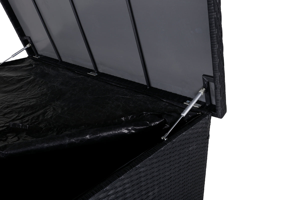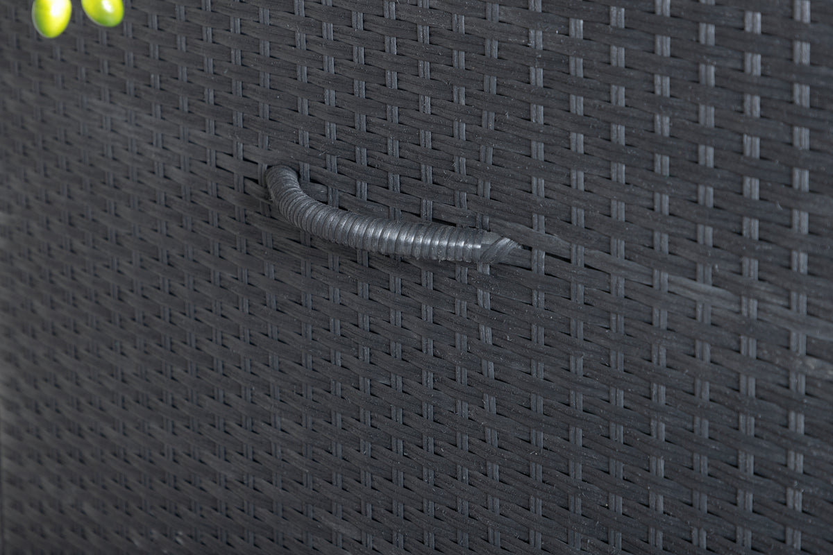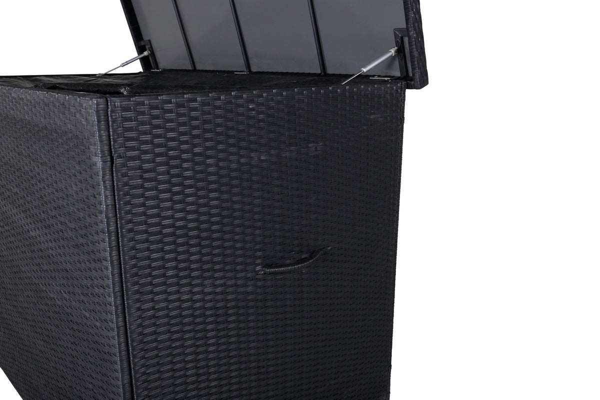 Lämna inte dina dynor ute i regn och rusk! Med en snygg och praktisk dynbox i svart kulör från serien Amazon skyddar du dynorna och kan förlänga livslängden. Den fungerar även utmärkt till förvaring av övriga utomhusartiklar - ett smart tillskott till uteplatsen helt enkelt! Skötselråd: Konstrotting är ett plastmaterial som passar alldeles utmärkt för vårt skandinaviska klimat. Materialet är UV-beständigt och tåler väder och vind. Att det är UV-beständigt gör att möblerna inte bleknas, däremot rekommenderar vi alltid att förvara möblerna under ett möbelskydd eller på annat vis torrt och svalt – för att förlänga livslängden.