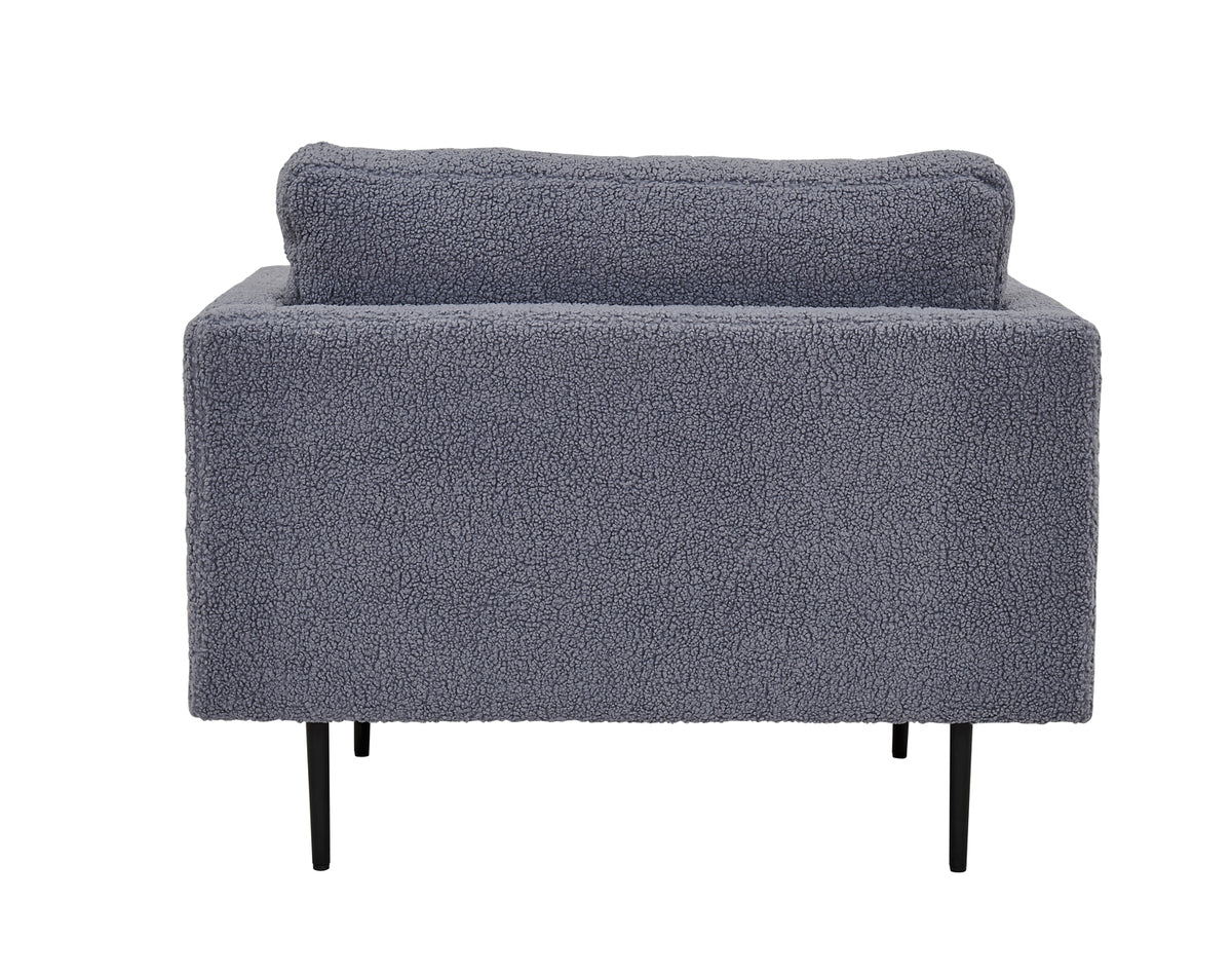 Mysig, lyxig och otroligt skön - en riktig fåtöljdröm helt enkelt! Vår snygga fåtölj i serien Boom inger en otroligt värmande och inbjudande känsla till ditt hem och kommer garanterat förlänga din värdefulla egentid. Den grå teddyklädseln är lika bekväm som trendig. Designen är tidlös med raka nordiska former och smala metallben. Ge dig själv en skön plats att slappna av på och låt fåtöljen bli vardagsrummets hjärta! Skötselråd Teddy: Ta bort fläckar med en gång, gnid inte utan försökt suga upp varsamt med en trasa. Skulle fläckarna inte gå bort, prova ett fläckborttagningsmedel som du först provat på en mindre synlig del av tyget.