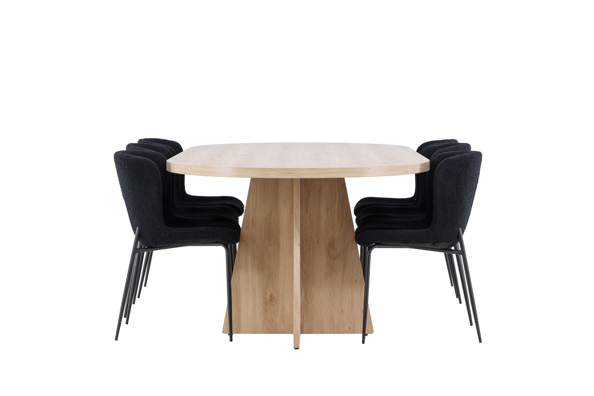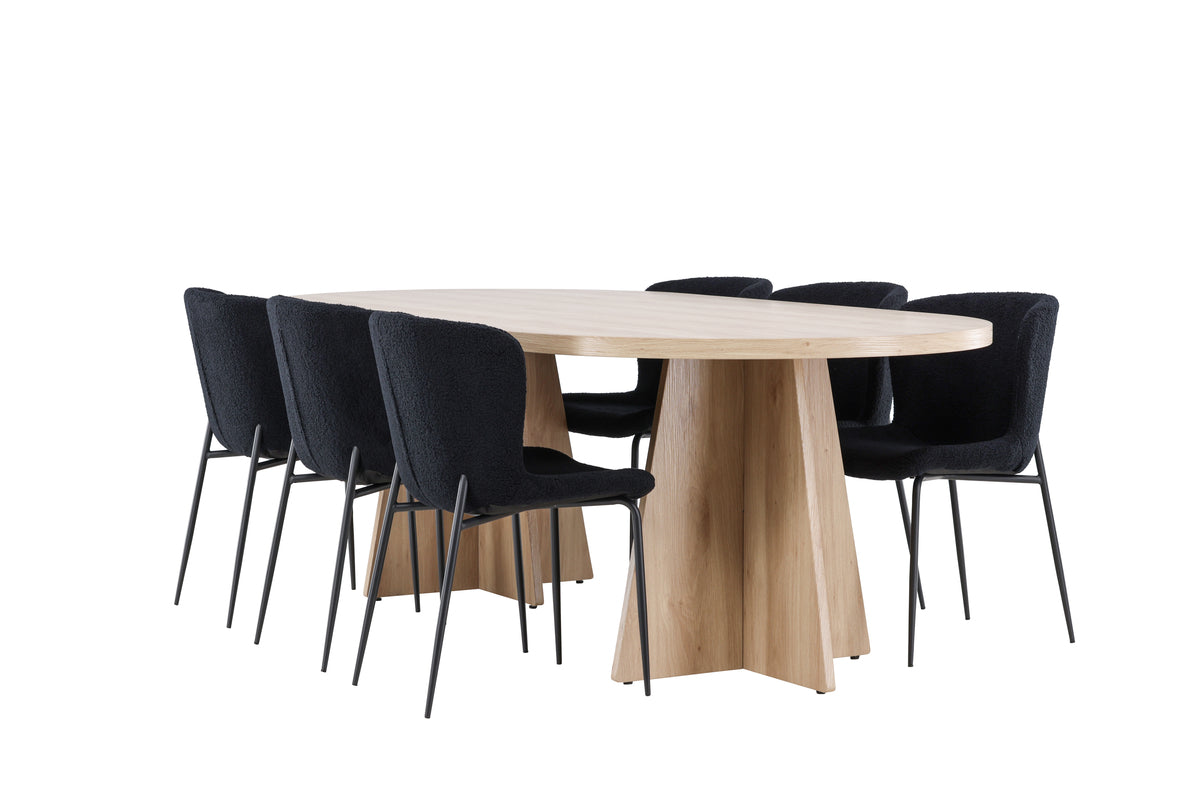 Skapa en elegant och modern matplats med vår matgrupp som kombinerar komfort och stil på bästa sätt. Upptäck Modesto matstolen - en perfekt kombination av elegans och modernitet för ditt matbord. Med en sits klädd i mjukt teddymaterial och ben tillverkade av stål erbjuder Modesto både komfort och stil. Den eleganta svarta sitsen matchas perfekt av de svarta benen, vilket ger stolen en tidlös och stilren design. Med sin enkla och moderna estetik passar Modesto perfekt in i olika inredningsstilar och lämnar ett bestående intryck i ditt hem. Ge din matplats en uppdaterad känsla av elegans och stil med Modesto matstolen, som är ett utmärkt val för både vardagsmiddagar och festliga tillfällen. Utforska skönheten och funktionaliteten hos Bootcut matbordet - det perfekta valet för att skapa minnesvärda stunder med vänner och familj. Med imponerande mått på 230x115 cm erbjuder detta bord gott om plats för sällskapliga middagar och långa samtal. Bootcut matbordet kommer i en förtjusande vittvättad färg som ger en jordnära känsla till ditt rum. Dess skandinaviska design och rena linjer bidrar till en stilfull och modern atmosfär i ditt hem. Skapa en inbjudande atmosfär och låt Bootcut matbordet vara centrum för dina sociala tillställningar, och ge ditt hem en touch av enkel elegans och gemenskap.