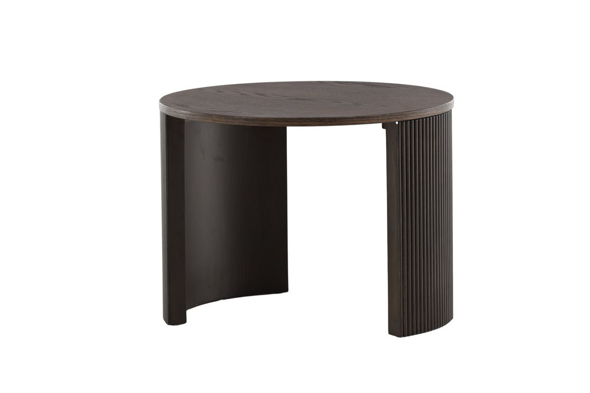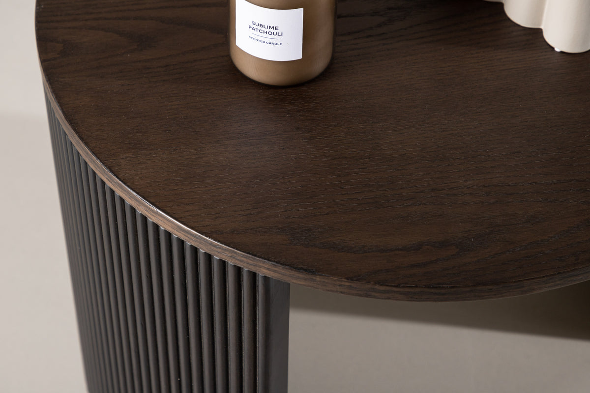 Ett soffbord som imponerar med sin säregna design och jordnära kulör, designad helt i linje med trenderna! Soffbordet från serien Bristol tillhör Venture Home kollektionen och har en smäcker utformning med en rund bordsskiva i brun MDF och ribbad stomme i brunt trä, format likt två halvcirklar som följsamt går i linje med bordsskivan. Placera på den mysiga mattan framför soffan så får du ett modemedvetet blickfång i vardagsrummet!