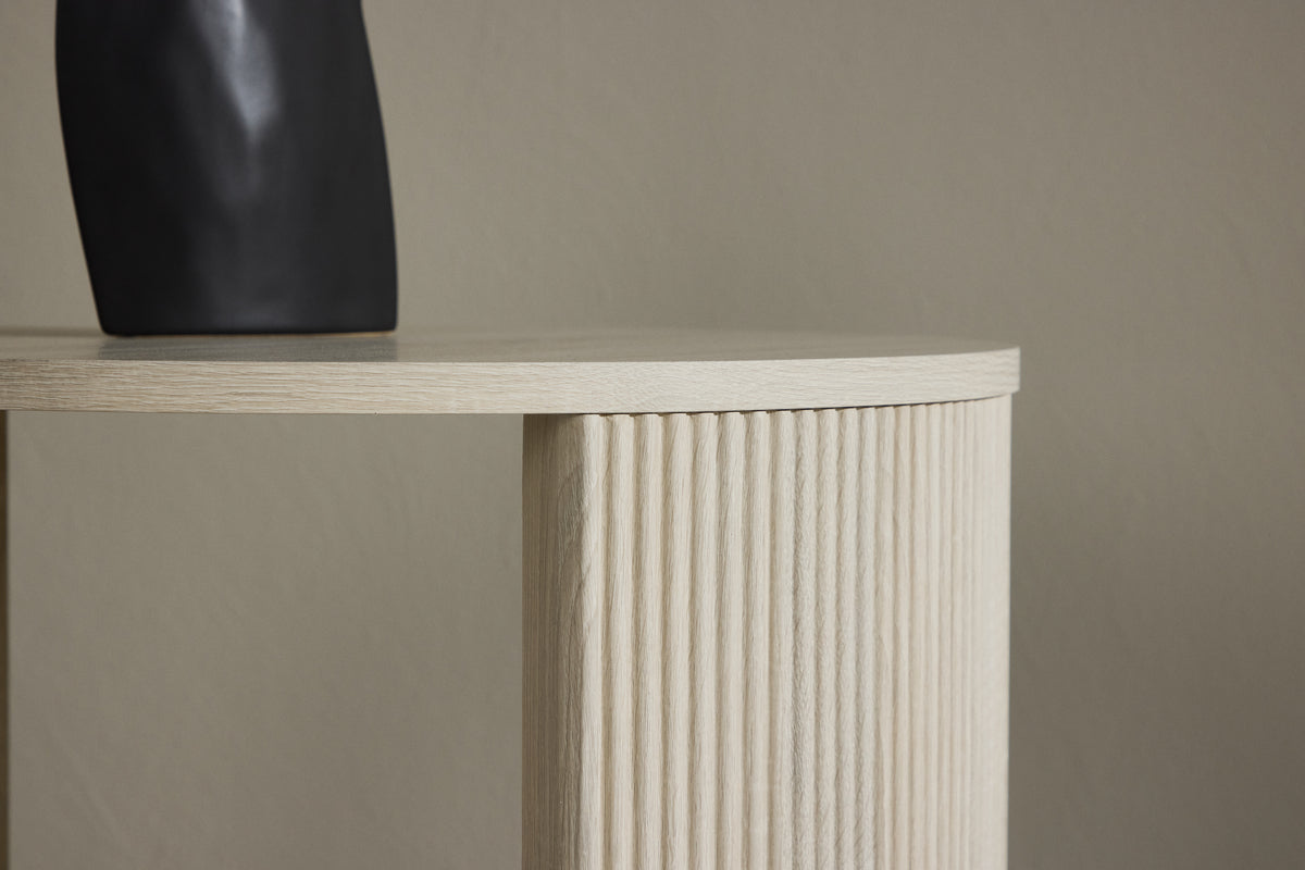 Soffbordet Bristol är ett stilrent och mångsidigt bord som kombinerar enkelhet med sofistikerad design. Tillverkat i MDF och i färgen whitewash, är Bristol en möbel som tillför en ljus och harmonisk känsla till ditt hem. Med sin runda form och kompakta mått på 60x45 cm är Bristol det perfekta soffbordet för mindre utrymmen eller som en elegant komplementmöbel i större rum. Den rundade designen ger ett mjukt och inbjudande intryck som passar både moderna och klassiska inredningsstilar. Bordets neutrala färg gör det enkelt att kombinera med andra möbler och dekorationer. Använd Bristol som en avlastningsyta för kaffe, tidningar och dekorativa föremål, eller låt det stå i centrum som en stilren detalj i ditt vardagsrum.
