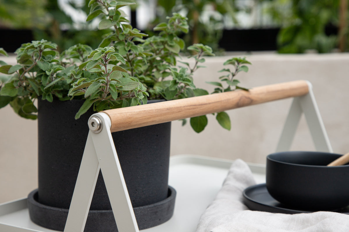 Clarin - det perfekta fikabordet till sommarens lediga stunder! Det här nätta sidobordet i beige stål har en kvadratisk toppskiva och stilrent smala ben som följsamt möter ett handtag i toppen gjort av dekorativ teak. Den minimalistiska och Skandinaviska designen ger dig ett utmärkt sidobord som står sig över tid. Gör dig redo för sommarens uteliv!