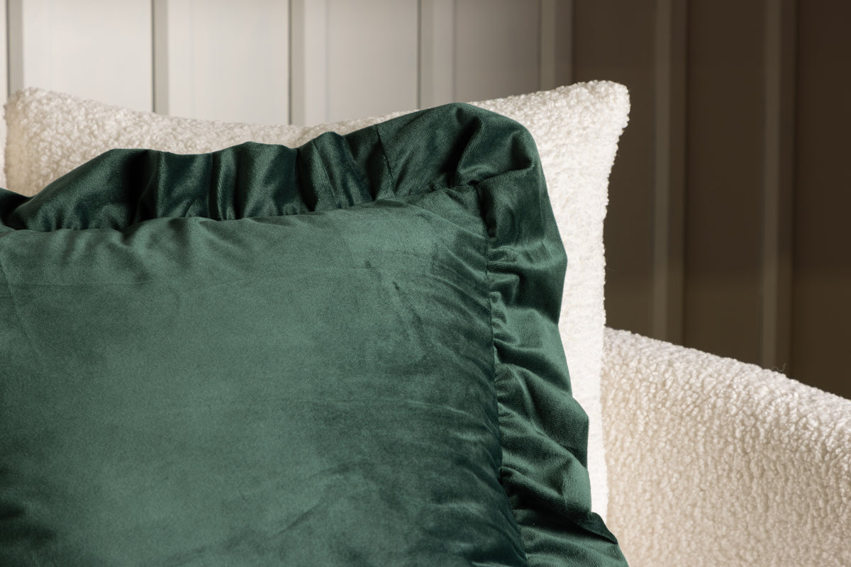Kuddfodralet från serien Hailey i skogsnära grön kulör skapar snabbt ett elegant och personligt blickfång i ditt hem! Kuddserien Hailey erbjuder kvalitativa kuddfodral i olika storlekar och kulörer - allt för att passa dina önskemål och inredningsstil bäst. Kuddfodralet ramas in av en dekorativ volangkant och har en dold dragkedja på baksidan. Det smäckra sammetstyget ger ett läckert lyster till kudden och gör att den smakfulla gröna kulören framhävs på bästa sätt!